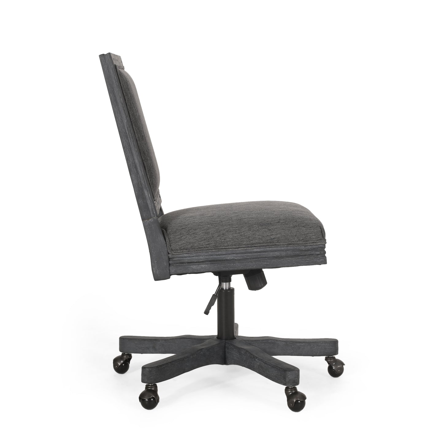 Turn your office into one of homey charm and refined style with seating that is perfect for your decor. Featuring smooth upholstery and a beautifully distressed wood frame, our office chair brings any space a wonderfully rustic atmosphere. This is finished with excellent functionality including a lift mechanism for adjustability, swivel movement, and rolling casters for easy mobility. Refined with a weathered finish, our chair will effortle...