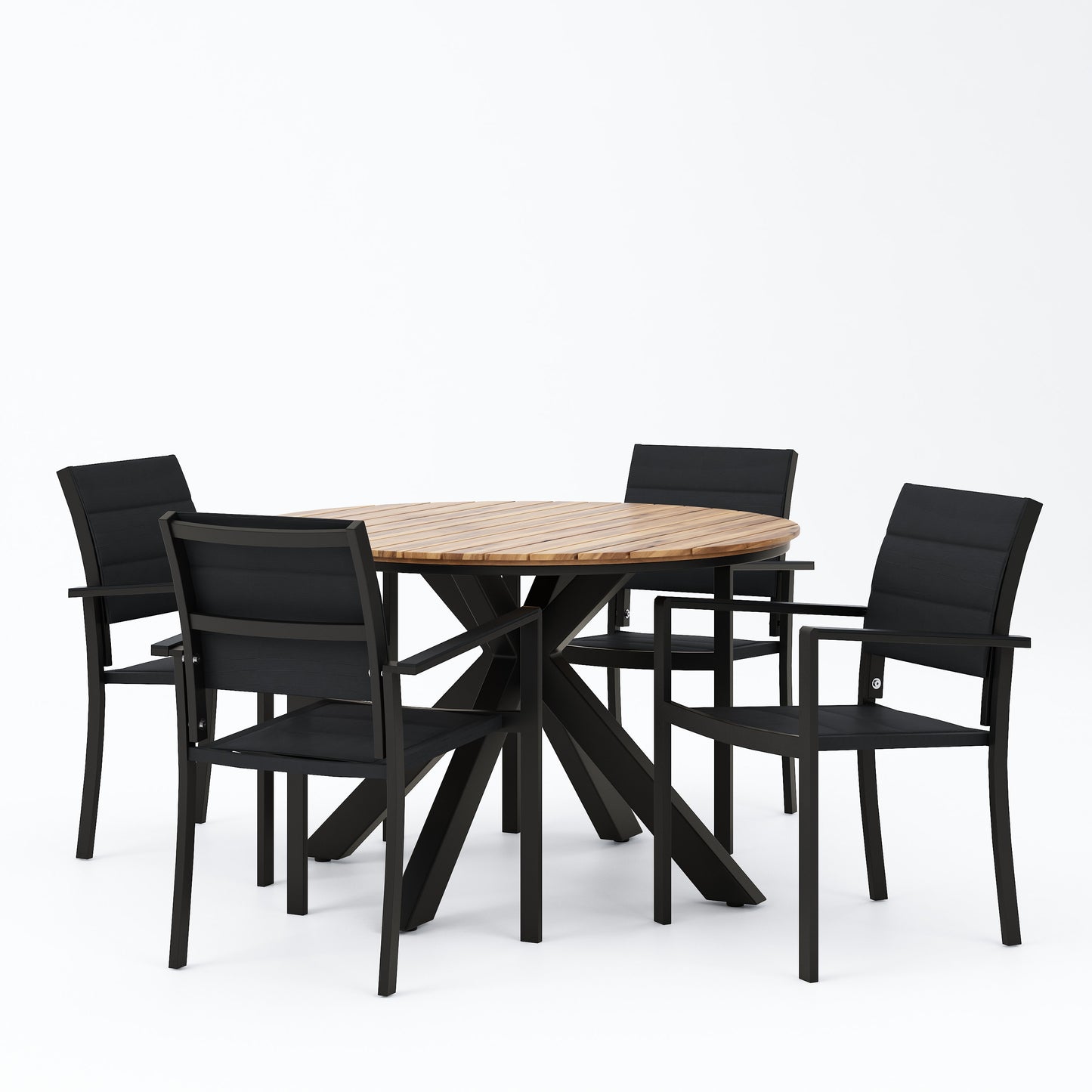 Mellie Outdoor Mesh and Acacia Wood 5 Piece Dining Set, Black and Teak