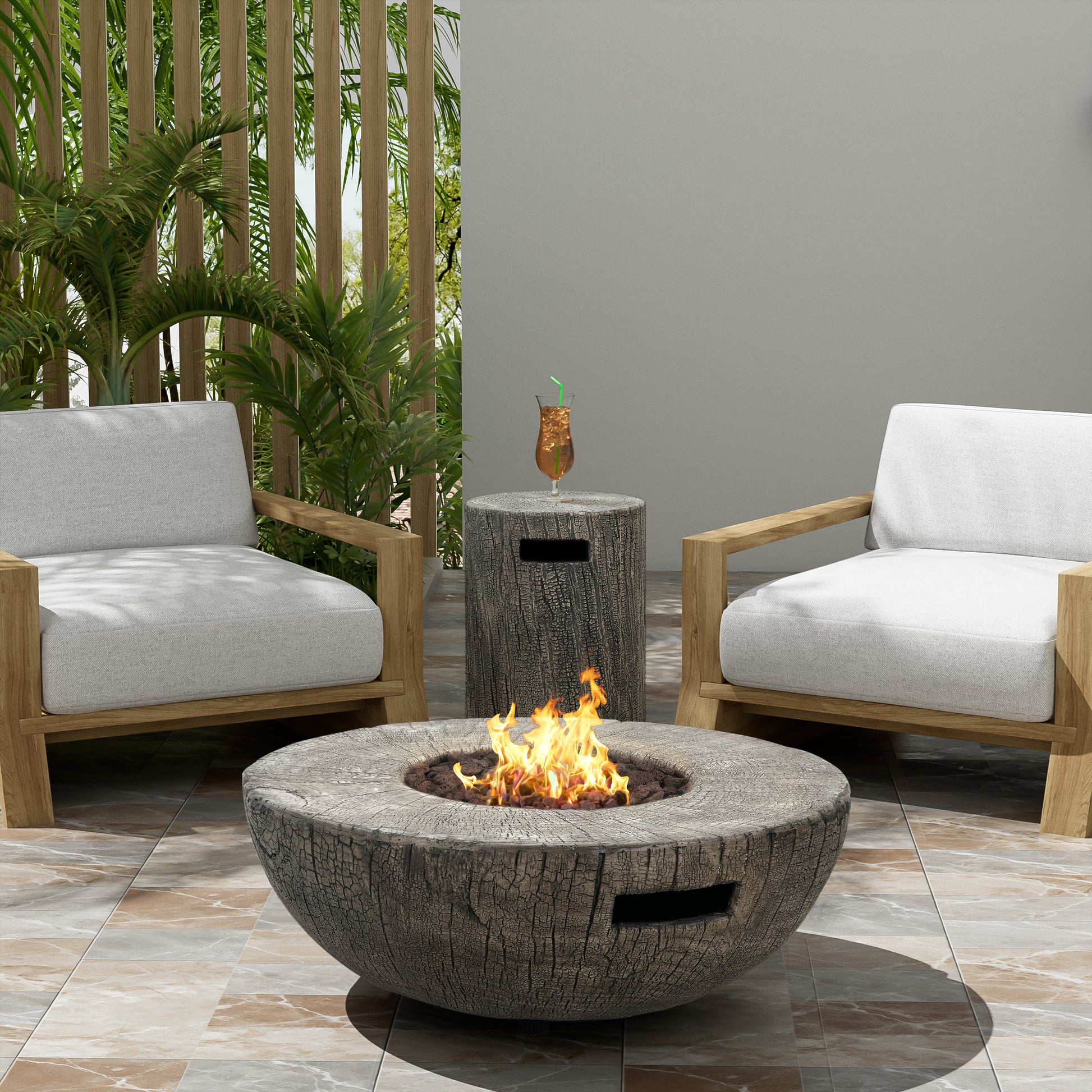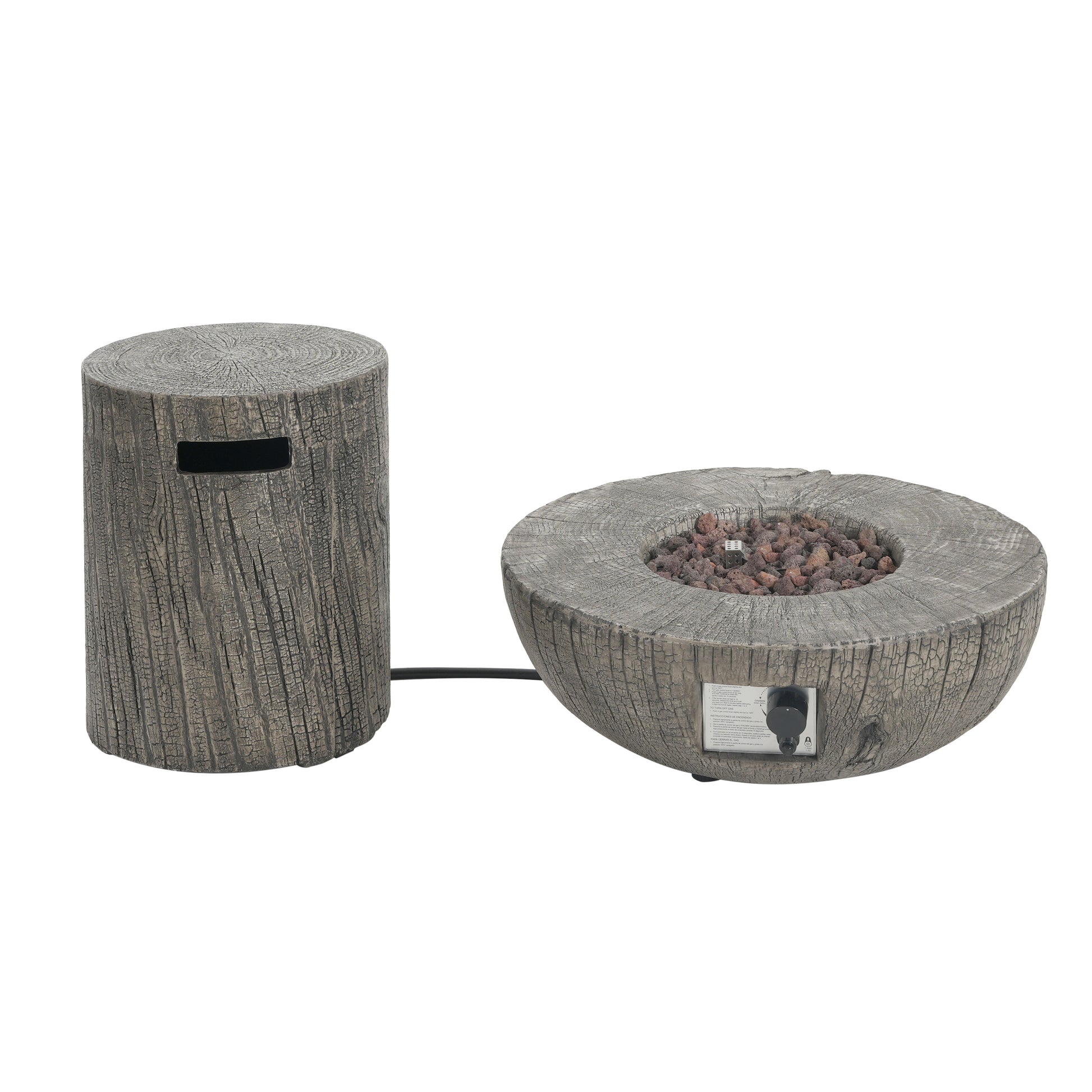 Both the fire pit and tank holder are made of magnesium oxide (MGO)—a lightweight yet durable material that withstands outdoor conditions while supporting significant weight. Sub...