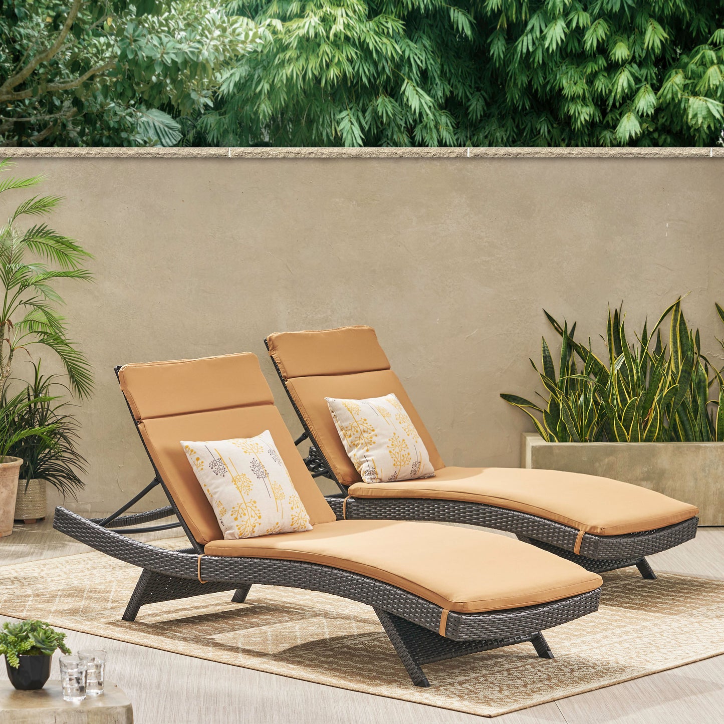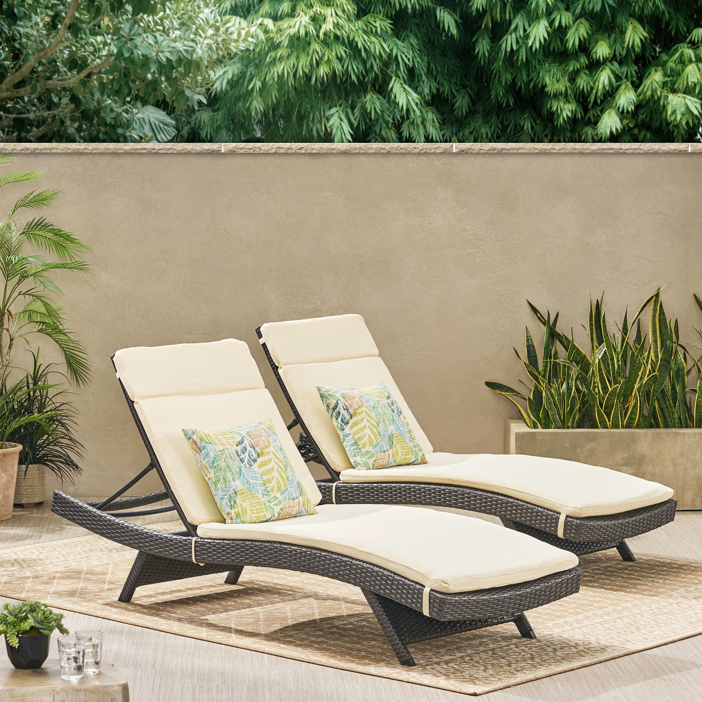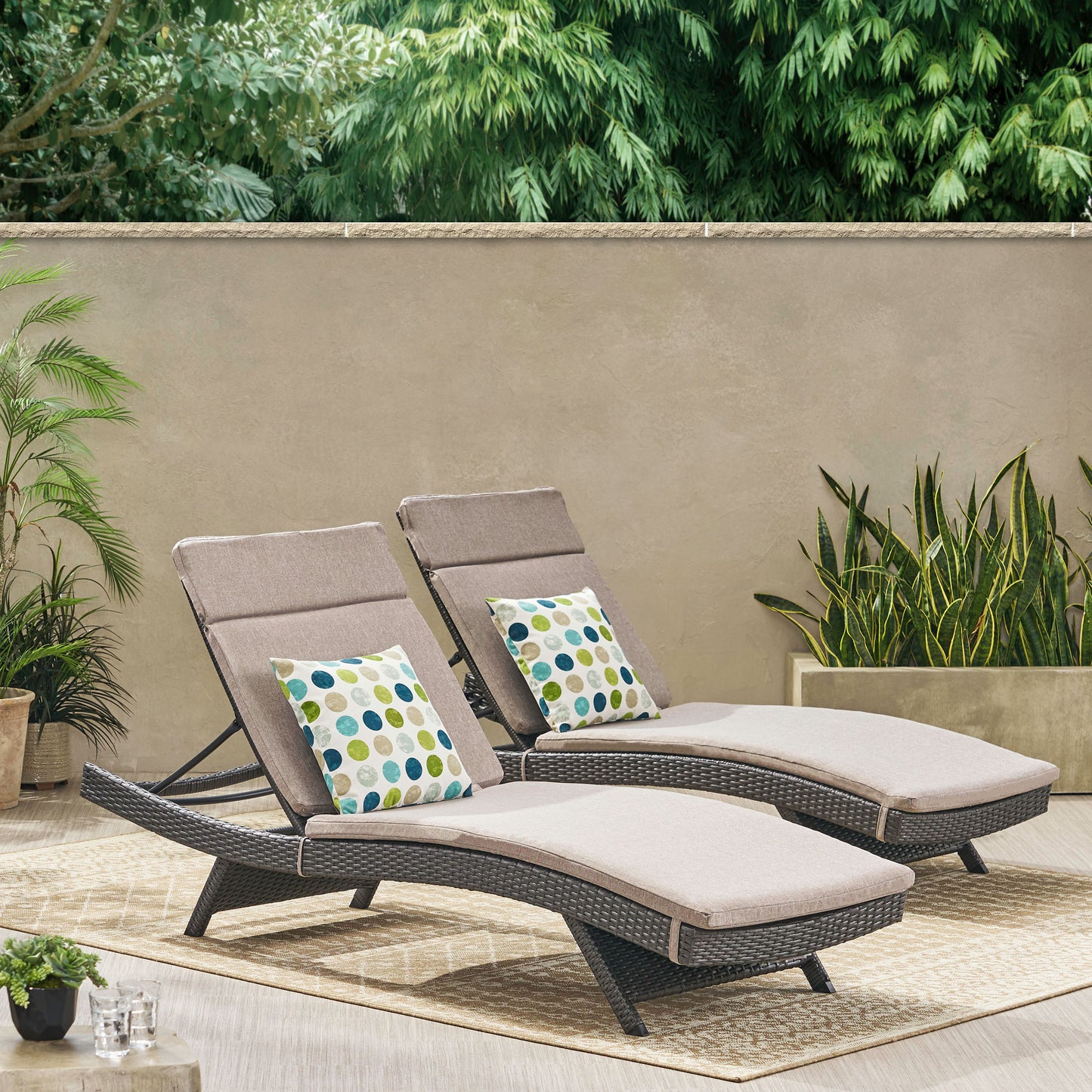 Nassau Outdoor Grey Wicker Adjustable Chaise Lounge with Cushion (Set of 2)
