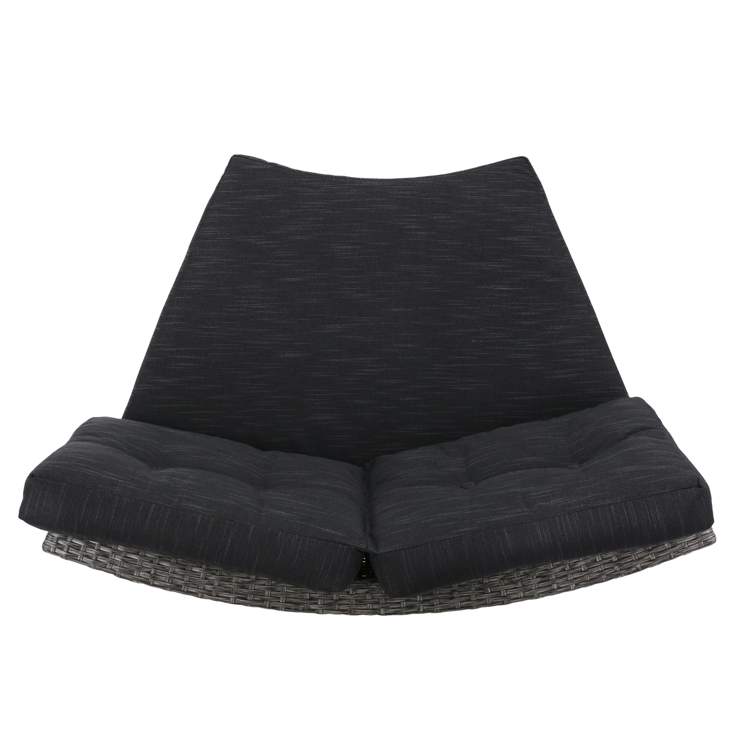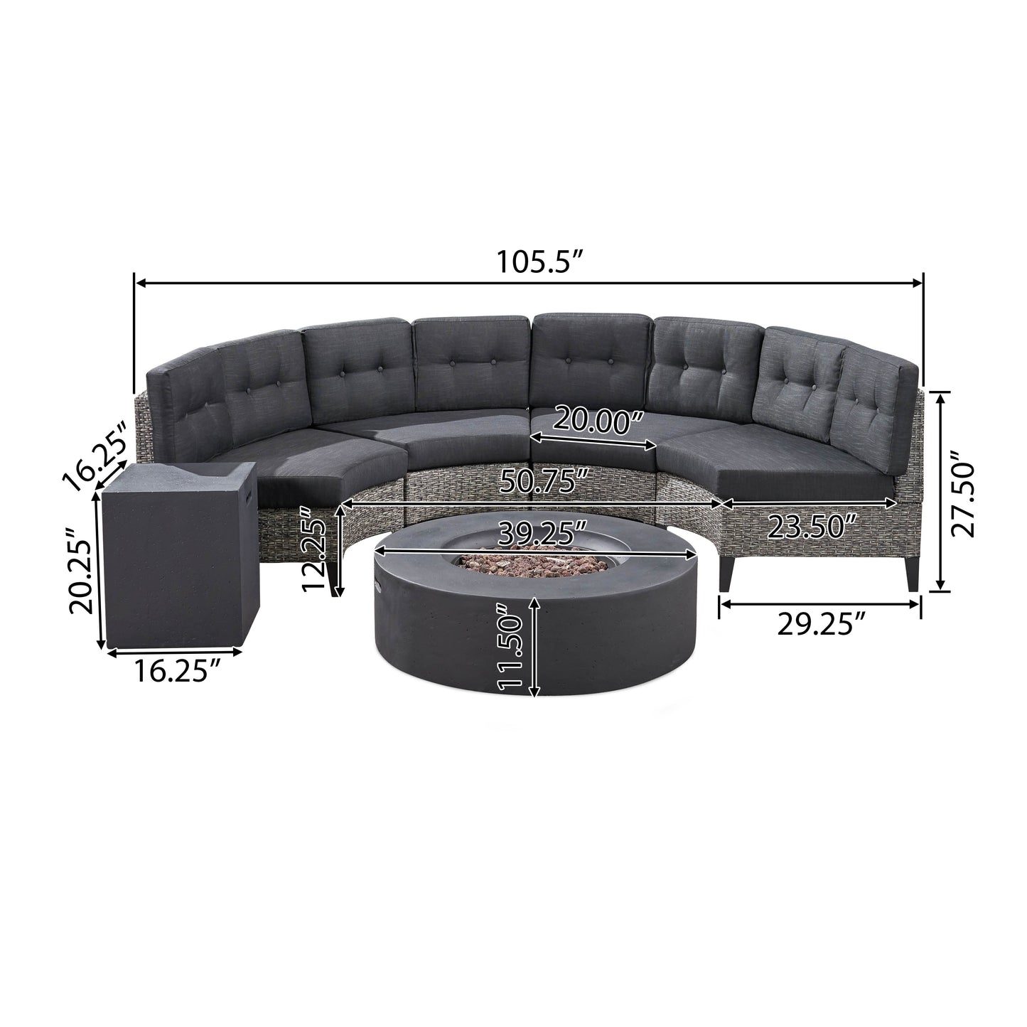Nessett Outdoor 6 Piece Mixed Black Wicker Half Round Sofa Set with Dark Grey Fire Table