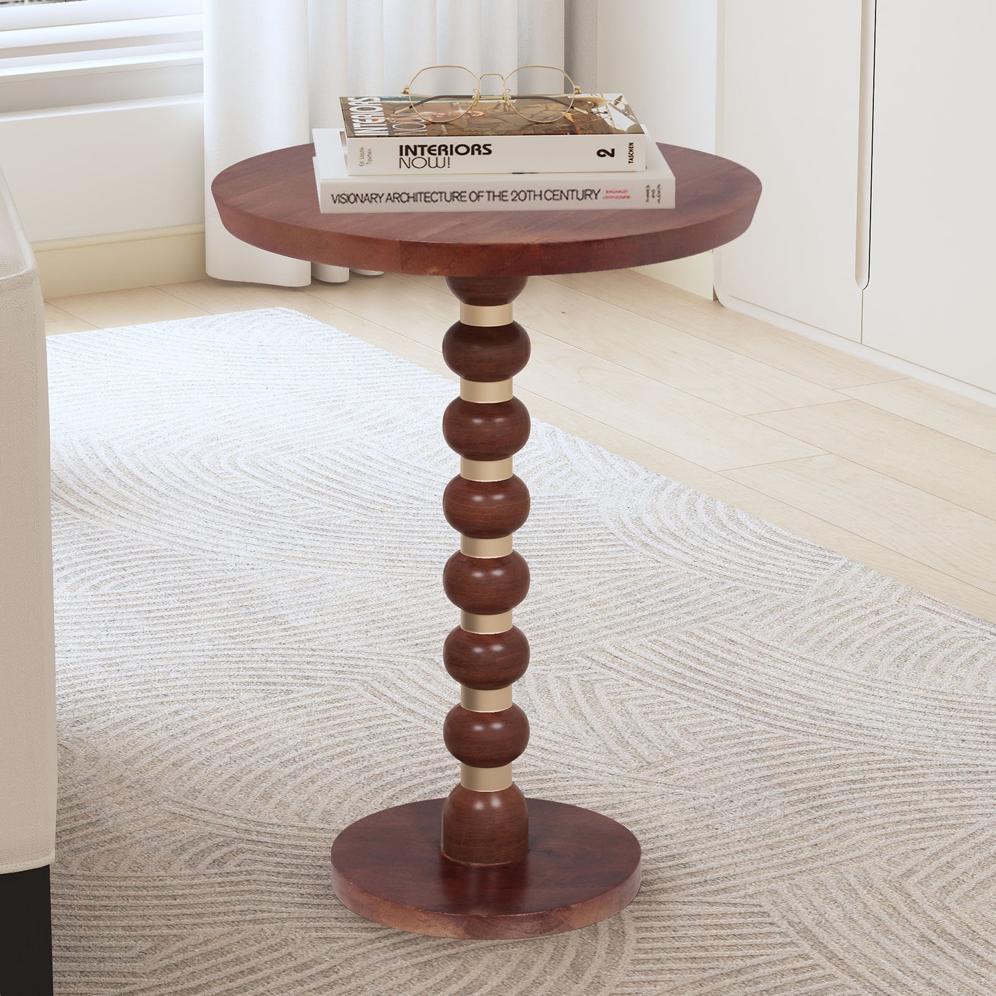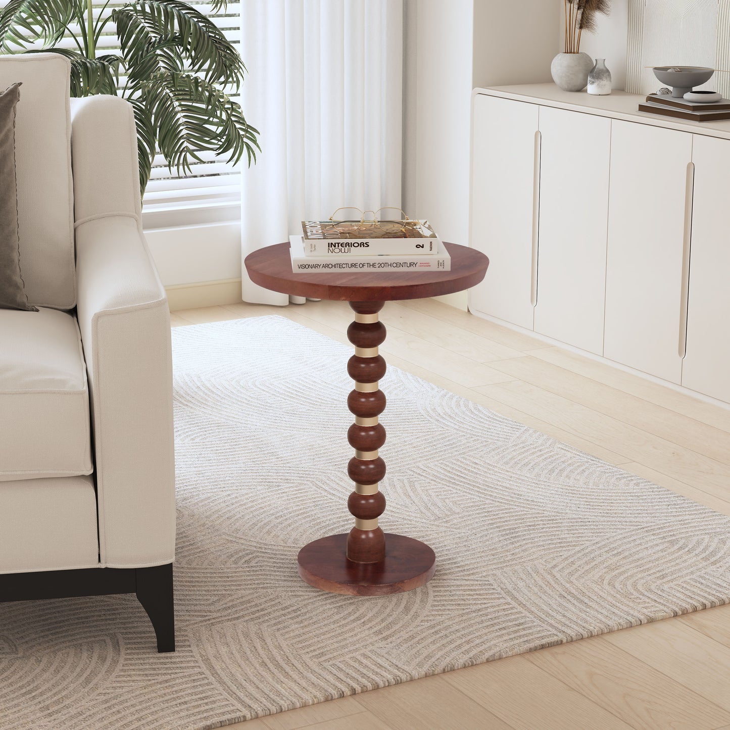 Get ready to amp up your space with this modern-forward end table. It's handcrafted from solid mango wood. We love how the natural wood grain patterns add depth and character to any room. The circular table top is just the right platform for a stack of books or a place to show off your favorite decorative piece.