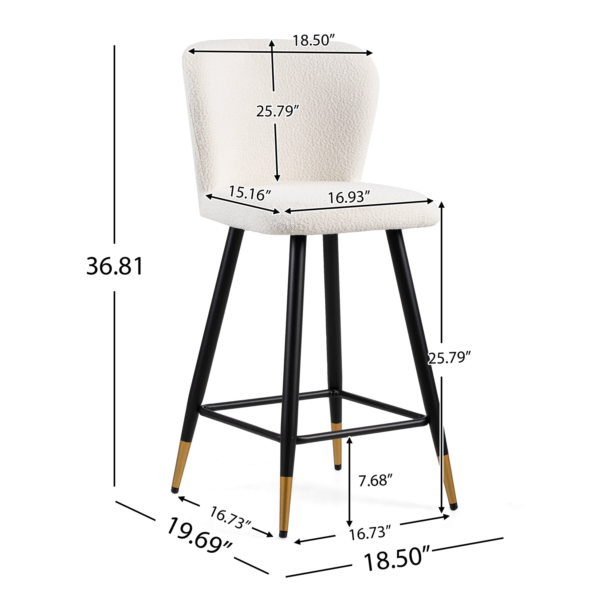 Dimensions: 18.5"L x 20.8"W x 41.34"H or 18.5"L x 19.69"W x 36.8"H.This bar stool measures 30 inches or 26 inches in seat height, suitable for standard - height bars or kitchen islands, allowing users to maintain a comfortable posture while sitting, convenient for dining or chatting.
