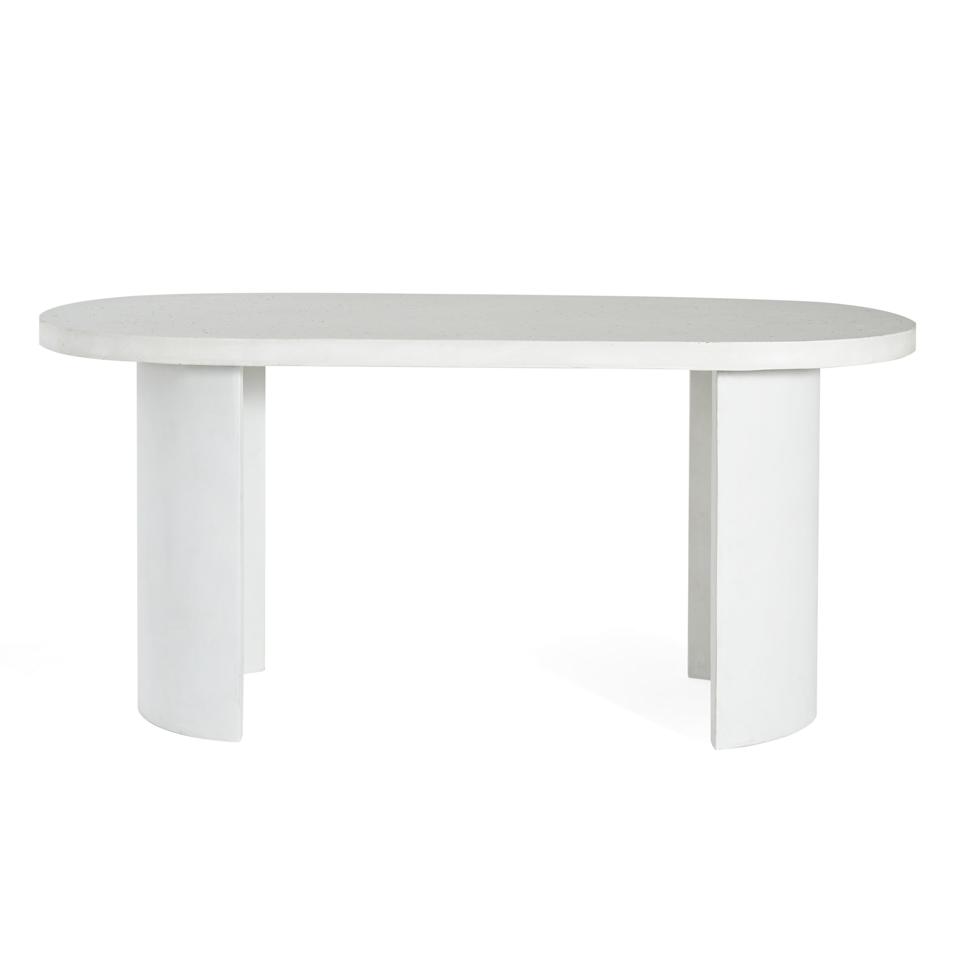 Ottilie Oval 67.5" Mondern Outdoor Concrete Dining Table,Terrazzo White