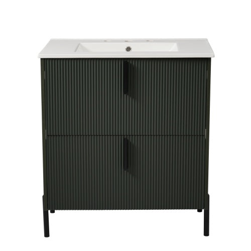 Peaken 30" Bathroom Vanity with Ceramic Sink and Full-Extension Drawers, Soft Close Undermount Drawer Slides