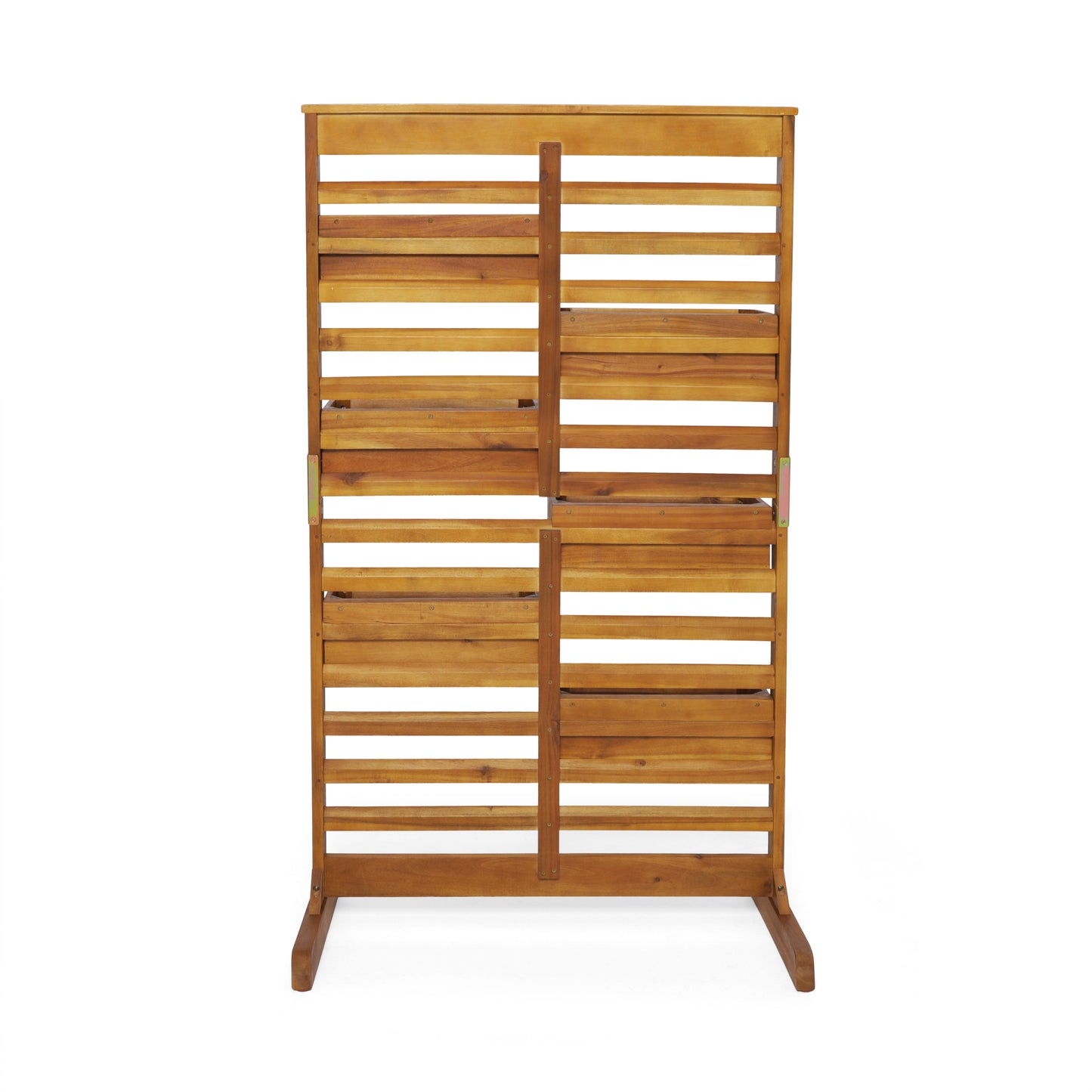 Add a touch of charm to your outdoor space with an accessory that will leave a lasting impression. From its stunning horizontal trellis design to its open slat paneling, our planter stand will instantly enhance your patio or backyard space with style. This accessory is beautifully crafted from rich acacia wood, offering a durable construction and six customizable planter boxes to ensure that your plants have a stable home to grow. Perfectly...