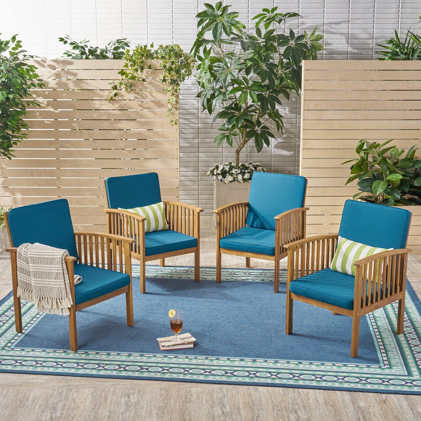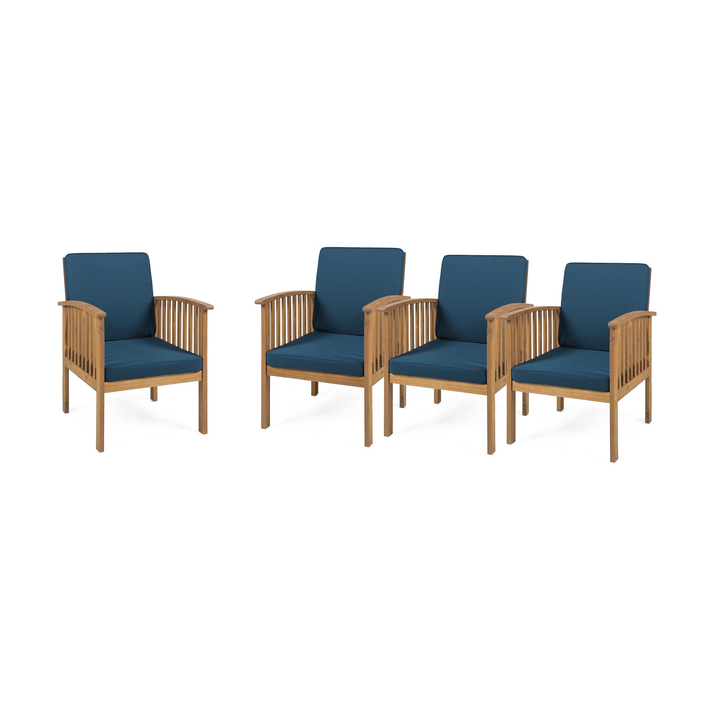 Ray Acacia Outdoor Acacia Wood Club Chairs w/ Cushions