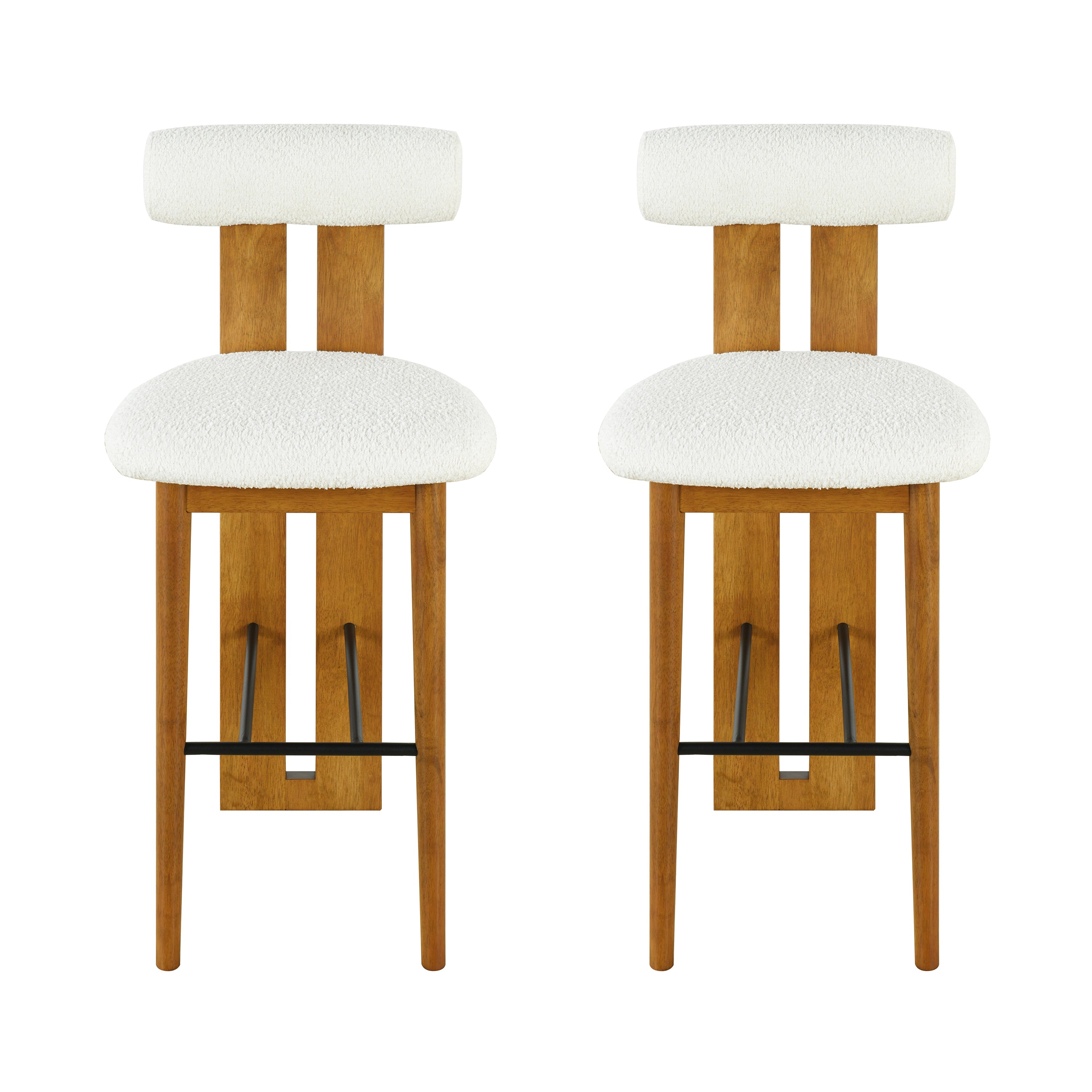 Harmonious Blend of Organic Warmth & Contemporary Elegance: Crafted from sustainably sourced rubberwood with a deep, hand-applied walnut finish, this bar stool embodies timeless sophistication. The rich, earthy tones of the frame create a warm focal point, while the crisp ivory upholstery adds a fresh contrast—perfect for modern farmhouse, Scandinavian, or transitional interiors.