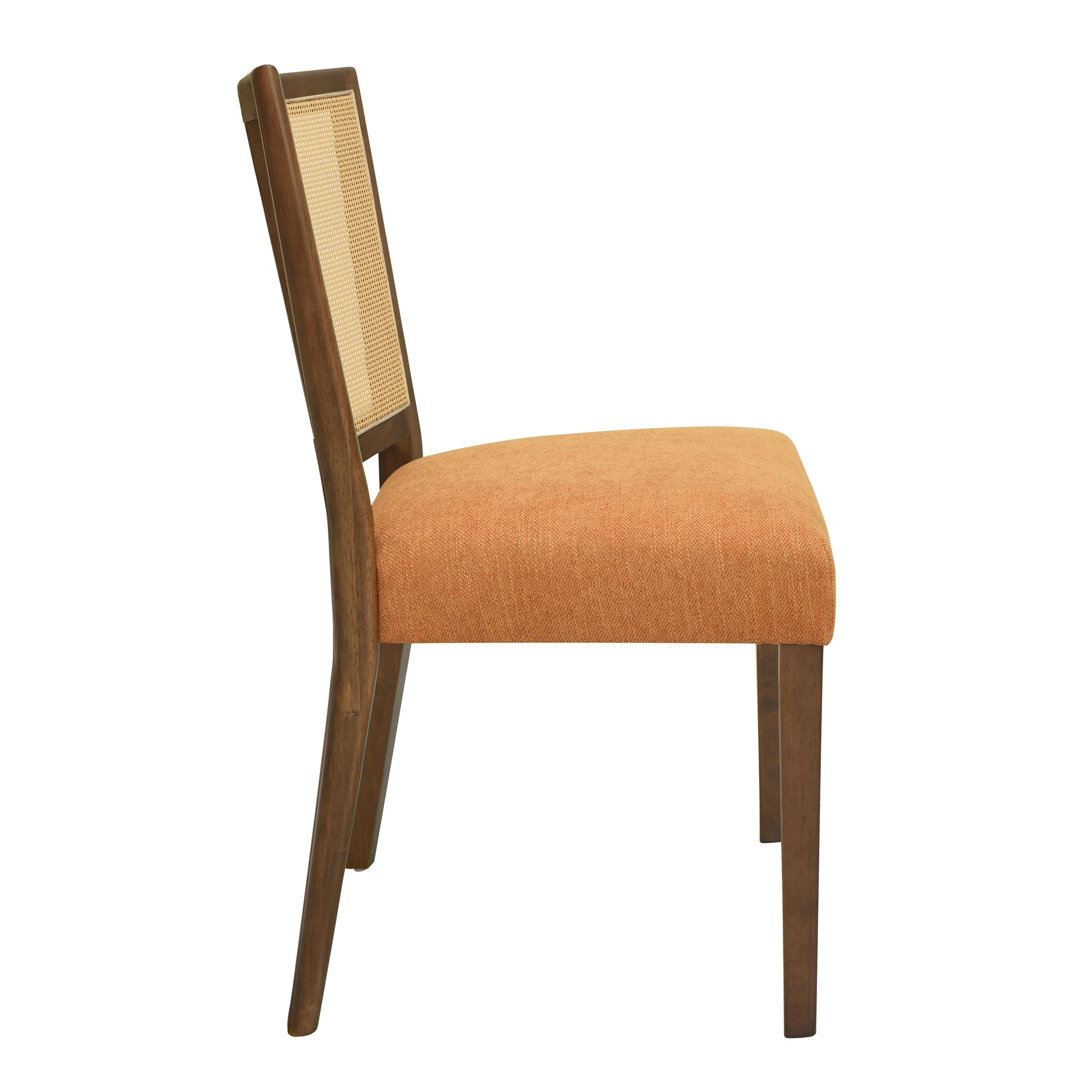 Enhance your dining area with this set of two wood and rattan upholstered armless dining chairs. Featuring fabric-upholstered seats, a rubberwood frame, and a rattan ladder backrest, these chairs embodying the essence of mid-century design and modern aesthetics, stands as the pinnacle choice for elevating your living space into an oasis of style and relaxation.