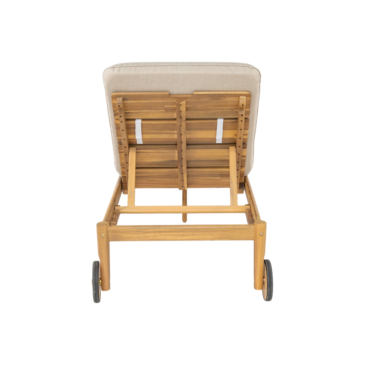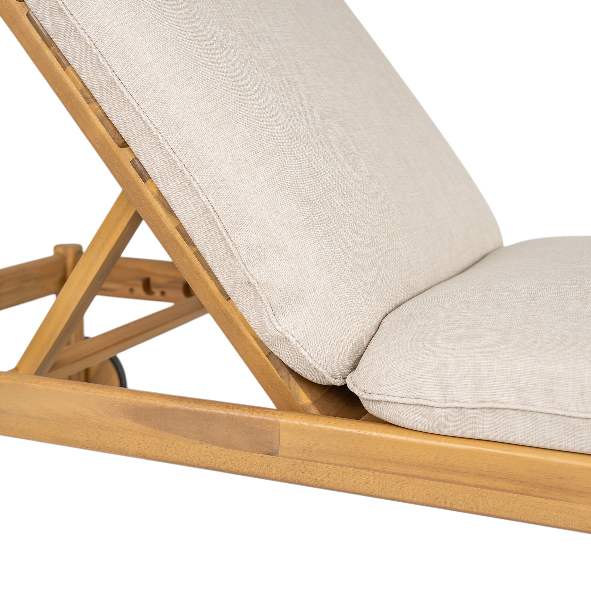 Overall Material and Design: The main frame of this lounger is meticulously crafted from high-quality acacia wood, exuding a natural and warm wooden luster. It is equipped with smooth wheels, allowing for easy and flexible movement in different scenarios.