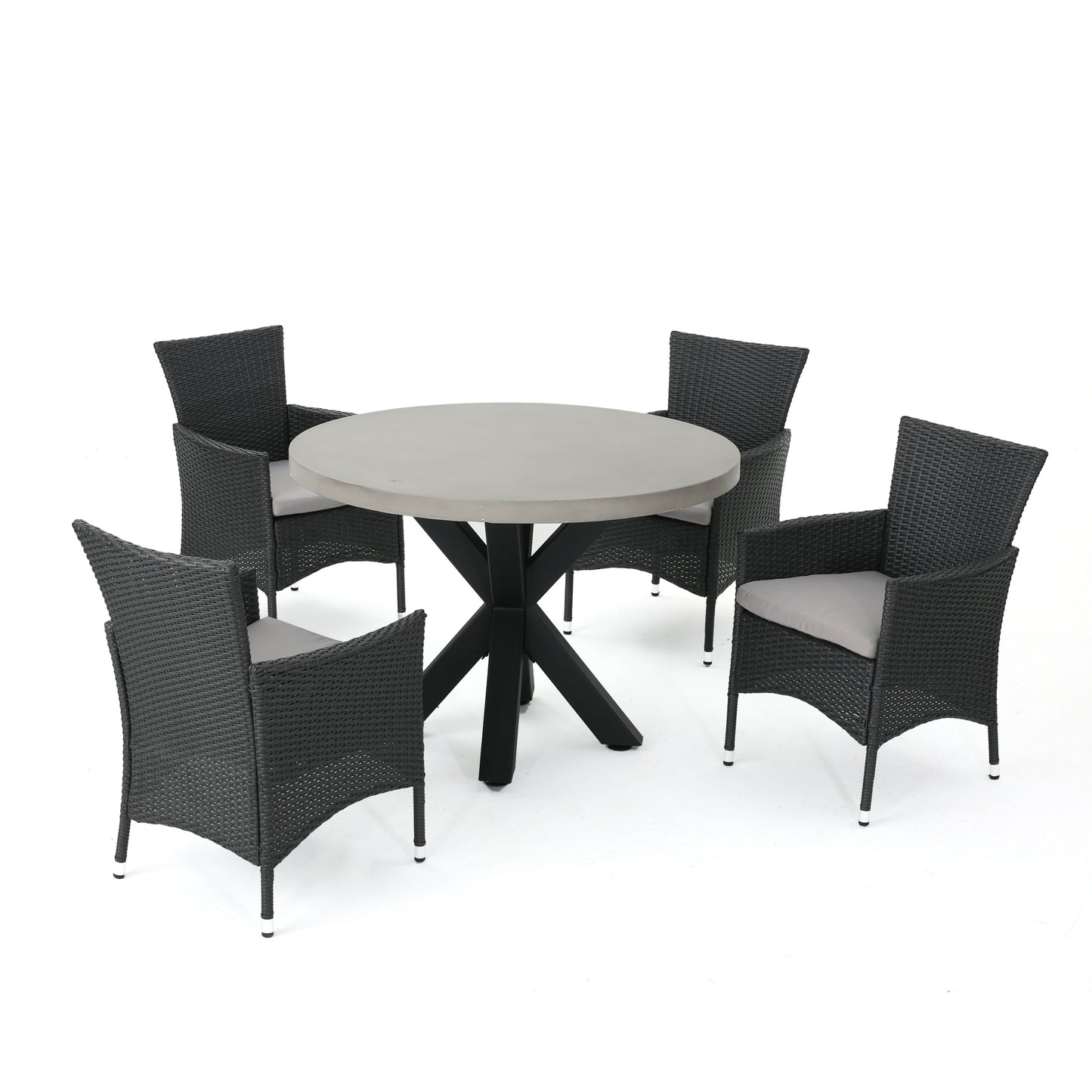 Sansai Outdoor Transitional 5 Piece Wicker Dining Set with Lightweight Concrete Table