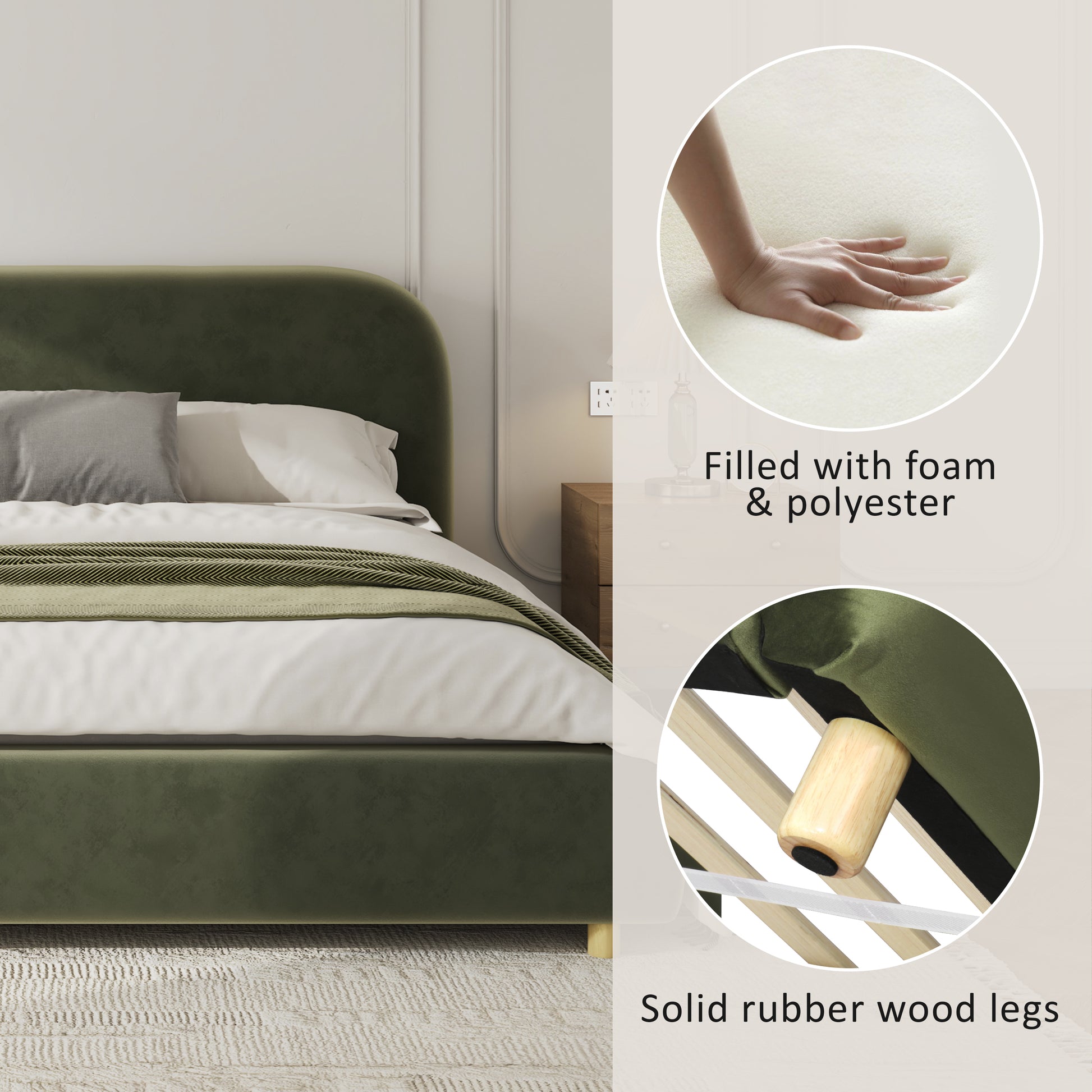 Selah Platform Bed, Boucle Fabric Upholstered Platform Bed,Curve-Shaped Design Headboard