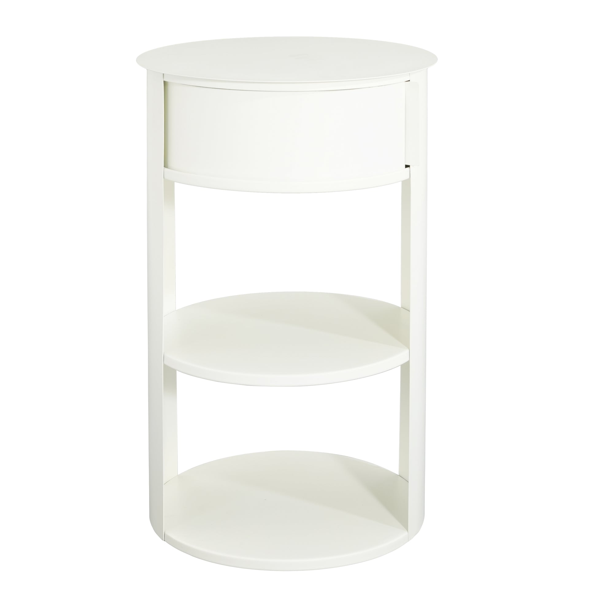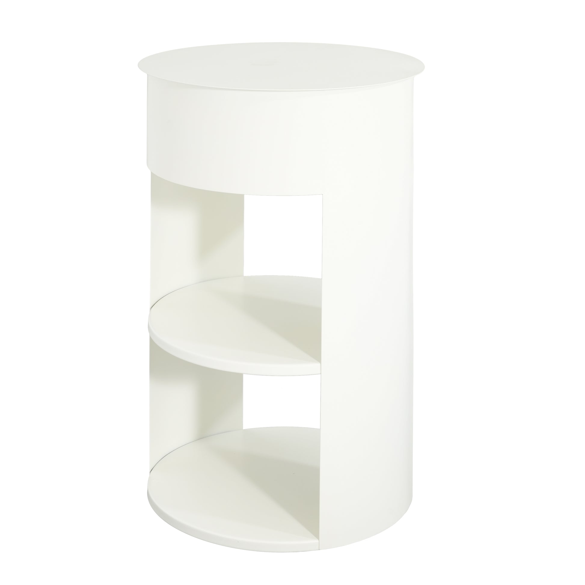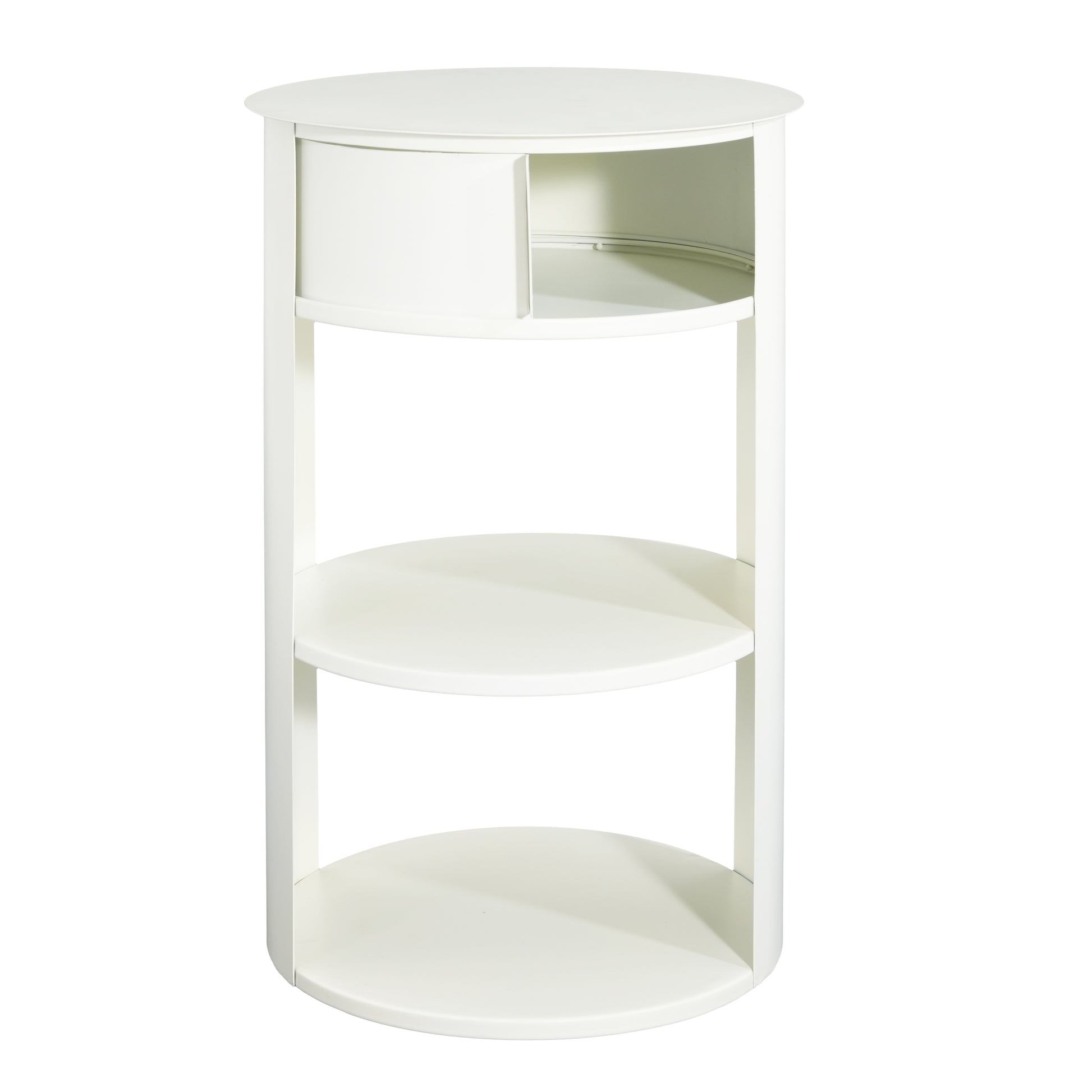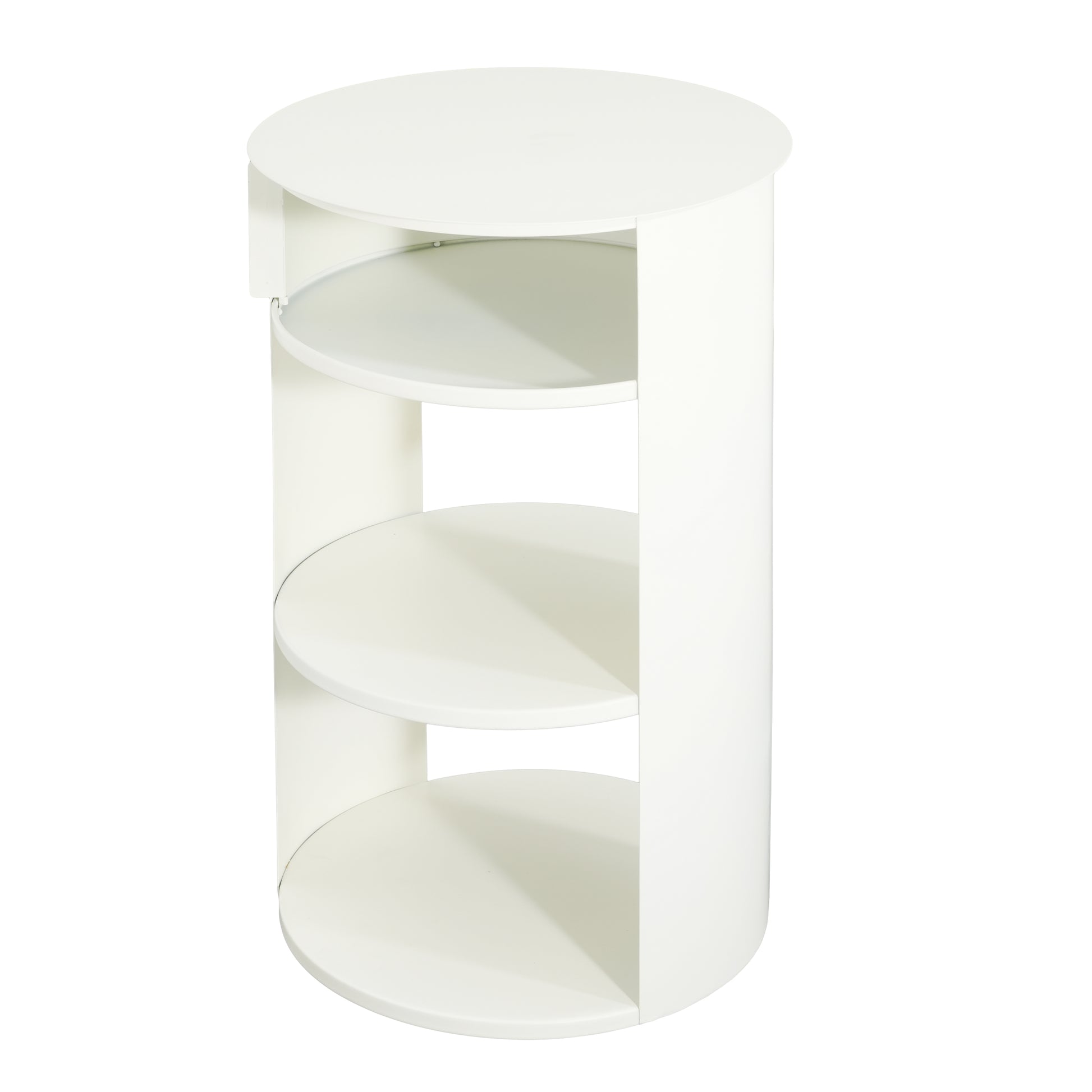 Somatilae Indoor 3-Tier Metal Round Side Table with Sliding Door Cabinet