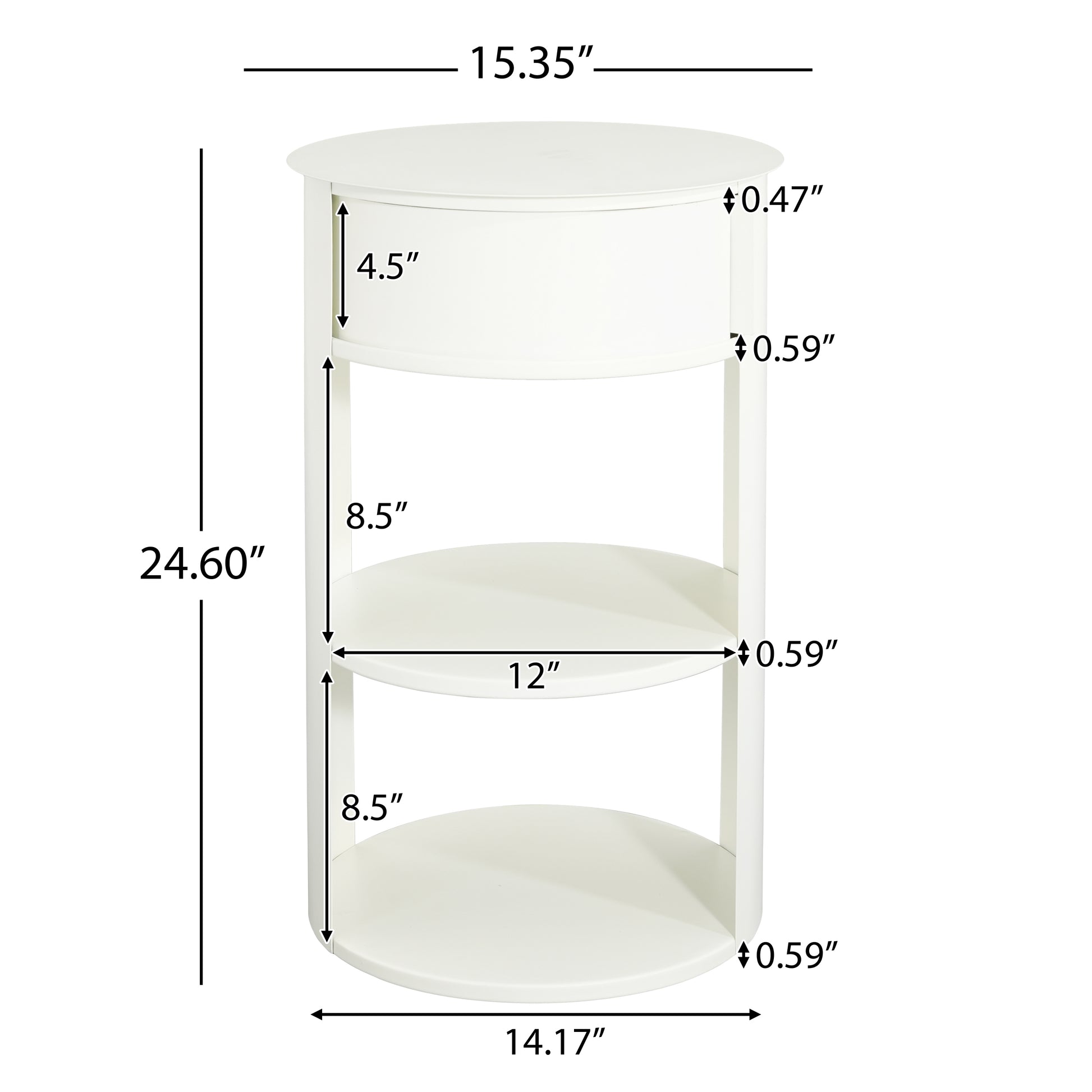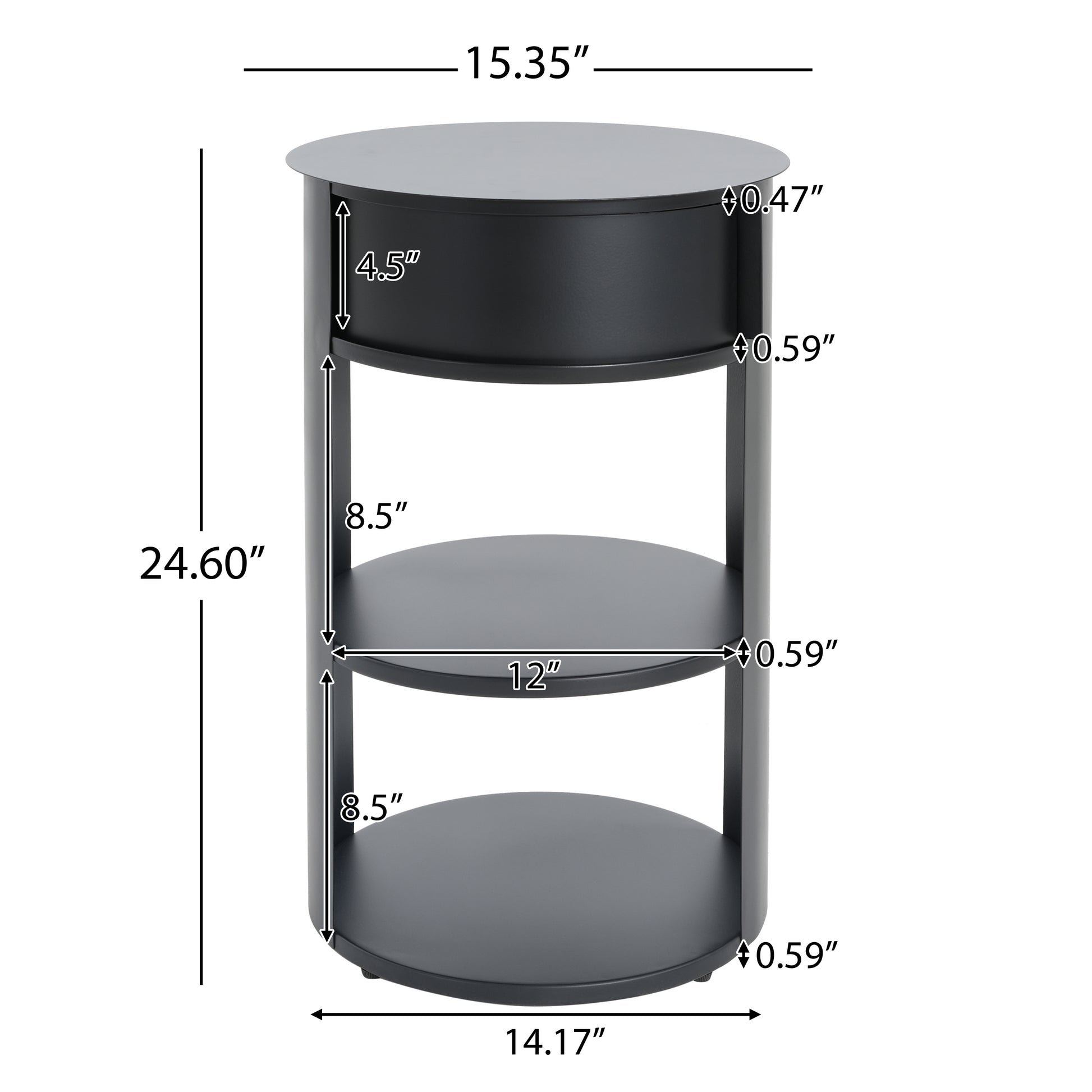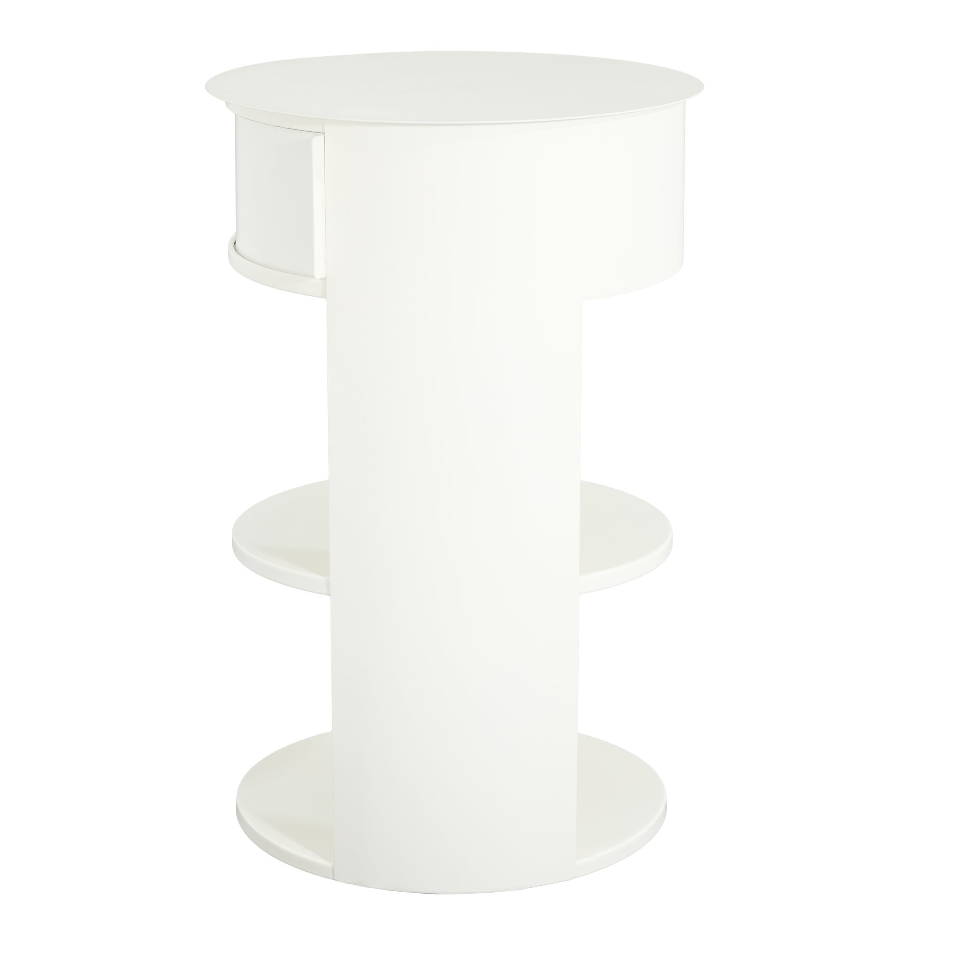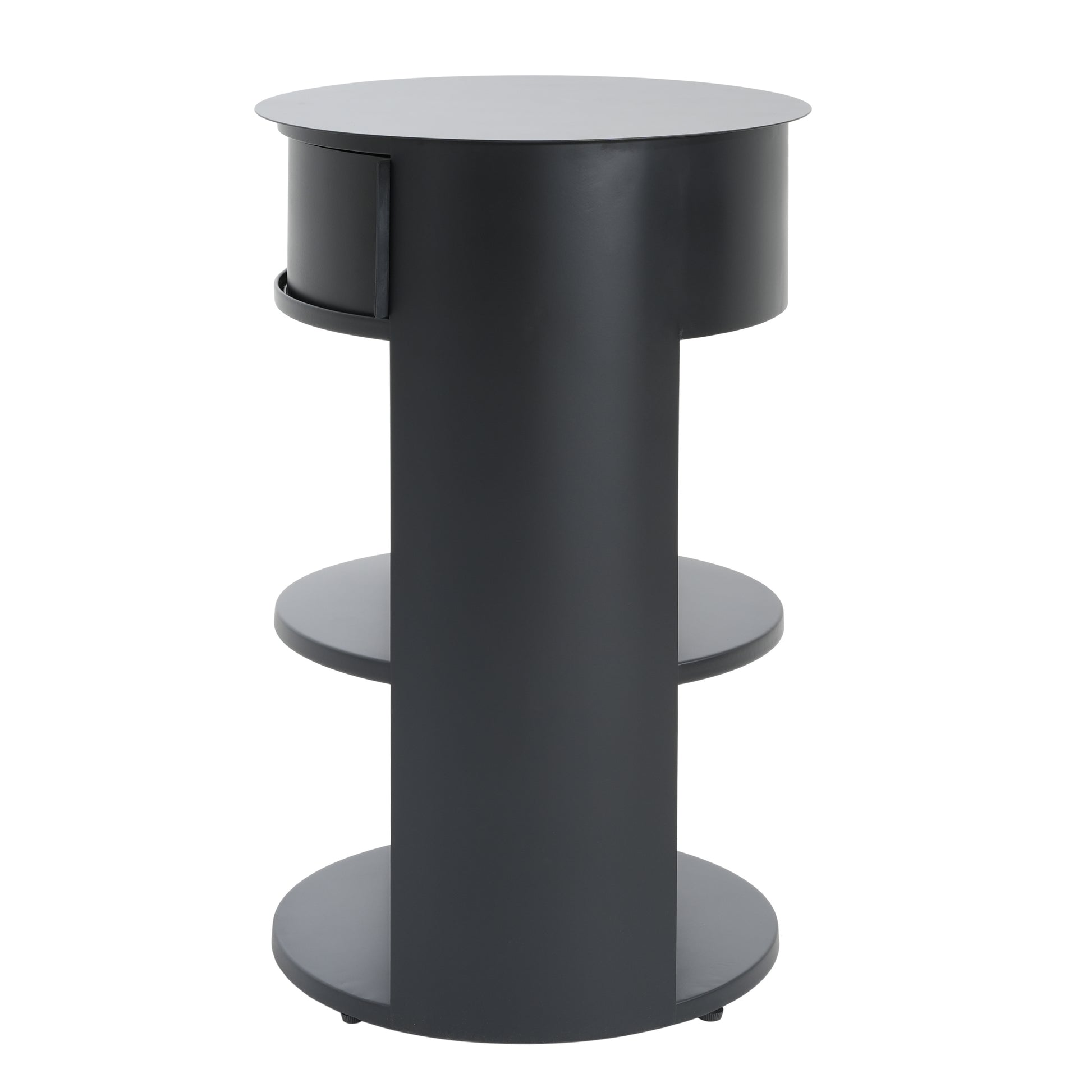 Somatilae Indoor 3-Tier Metal Round Side Table with Sliding Door Cabinet