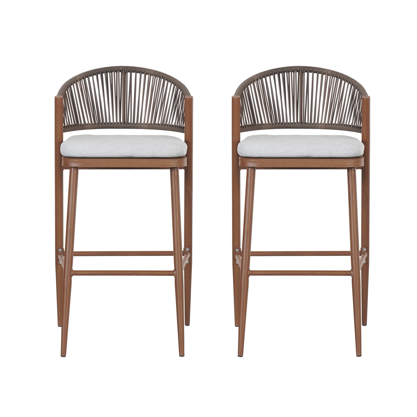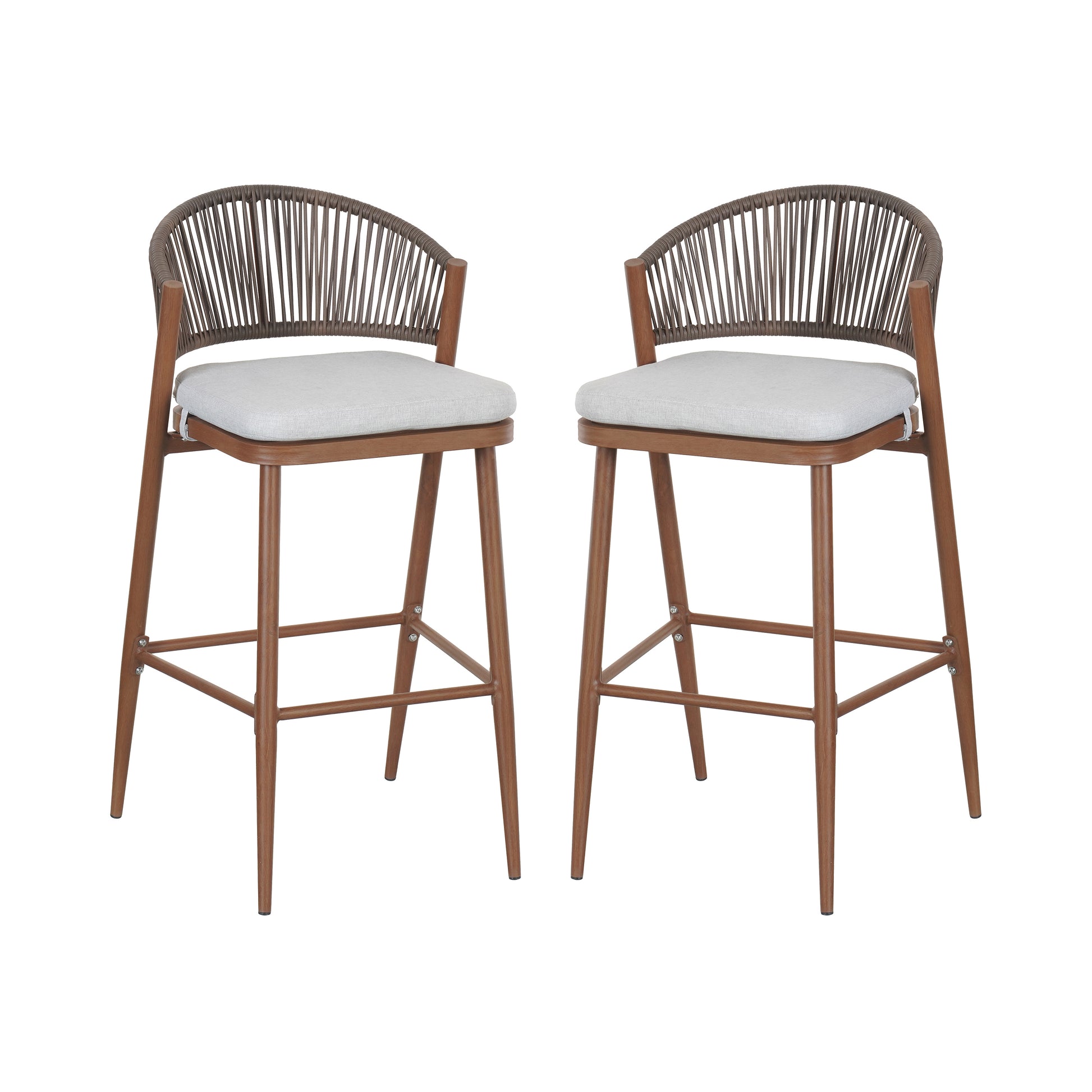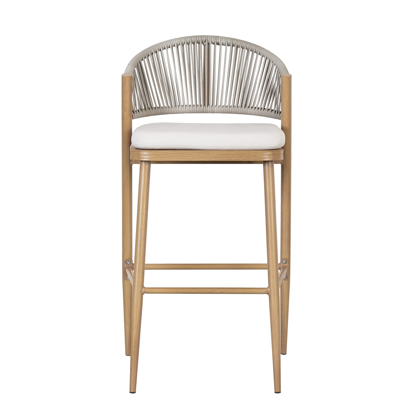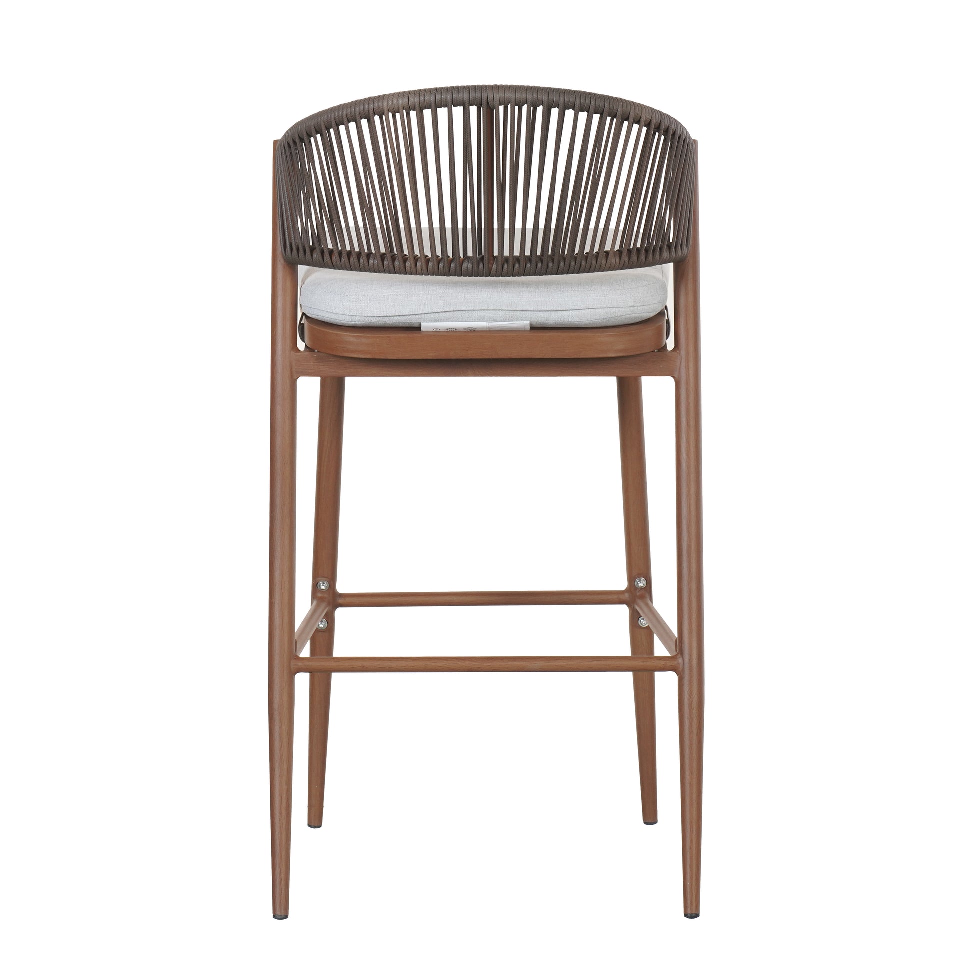 Modern Style: Composed of beautifully woven wicker and aluminum wood grain finish legs, these modern-stlye barstools will complement any outdoor bar or dining set up, bringing a subtly upscale flair to even the most unassuming home.
