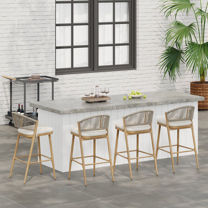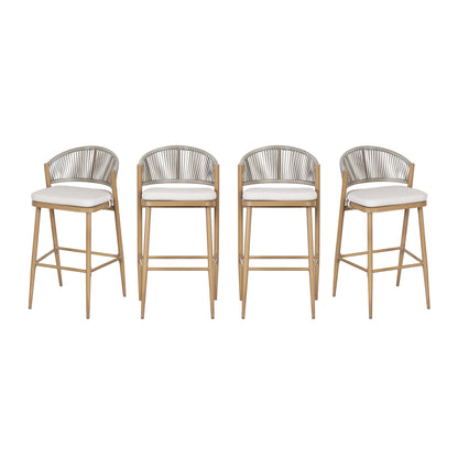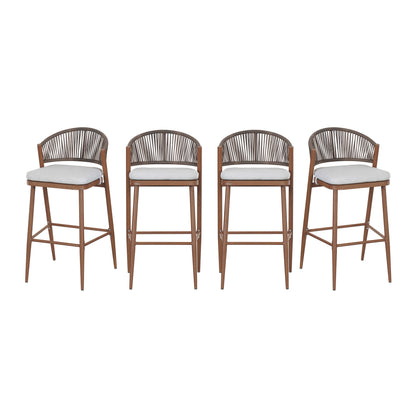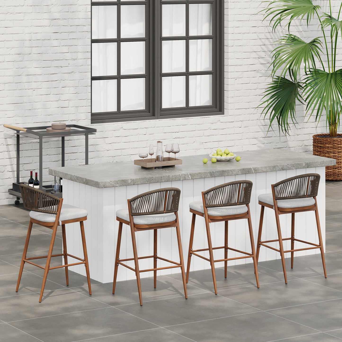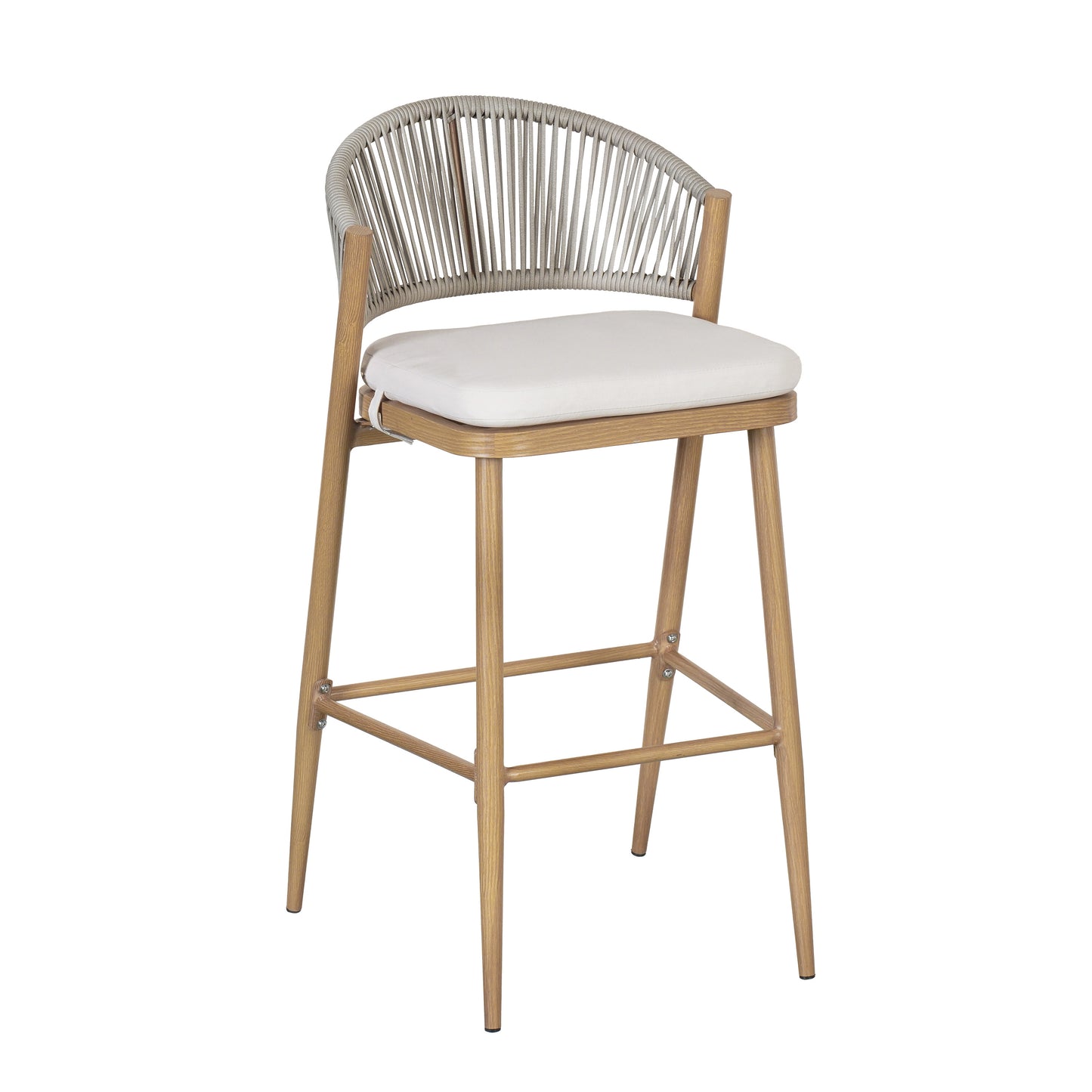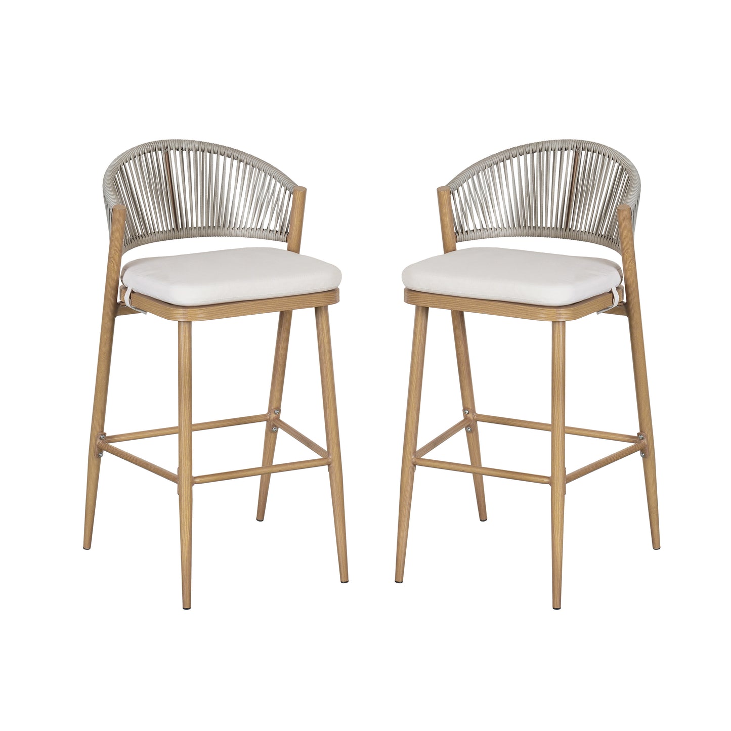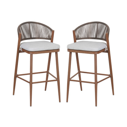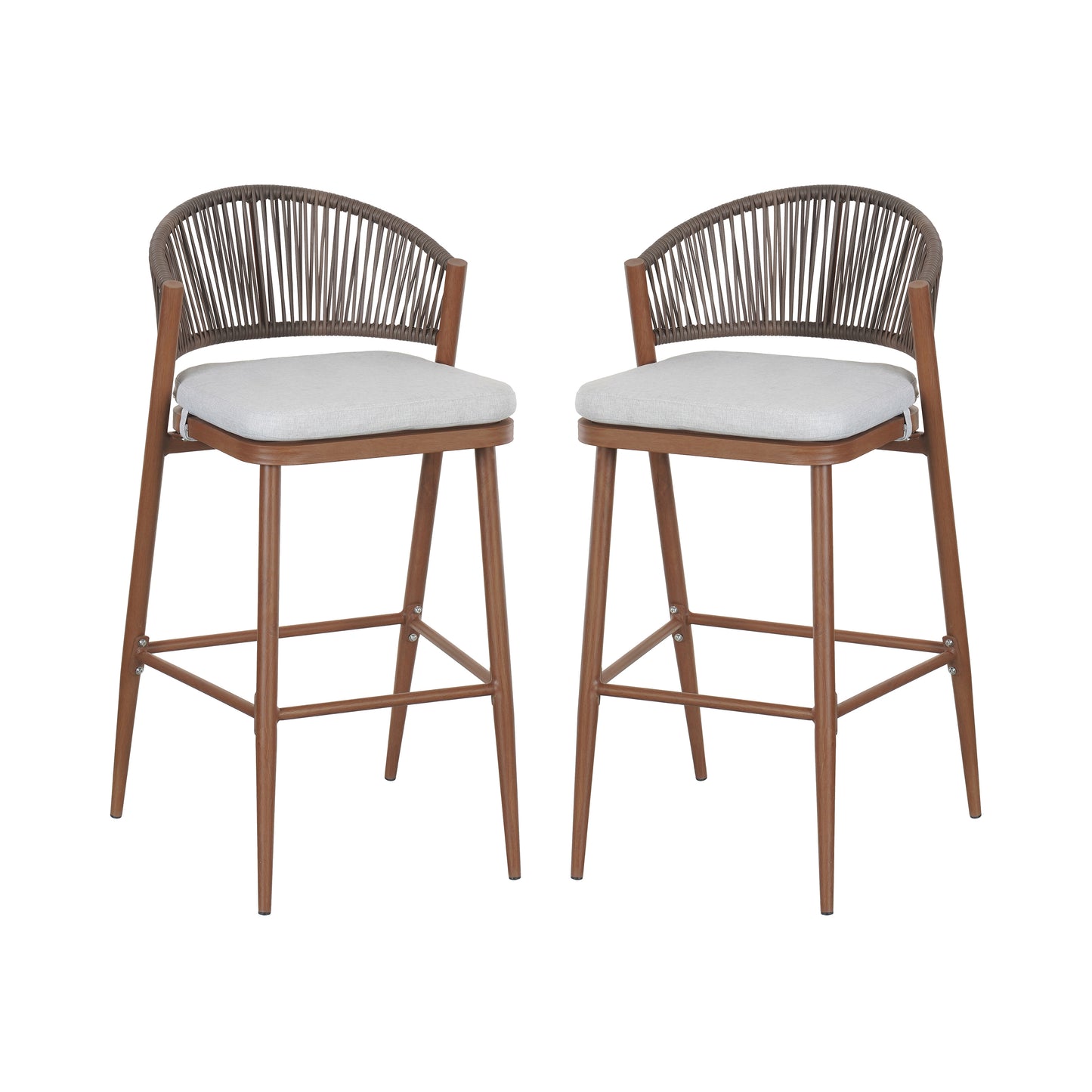 Modern Style: Composed of beautifully woven wicker and aluminum wood grain finish legs, these modern-stlye barstools will complement any outdoor bar or dining set up, bringing a subtly upscale flair to even the most unassuming home.