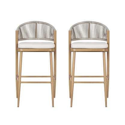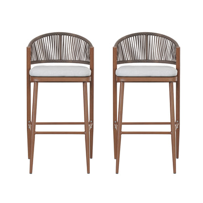 SunnyEscape Outdoor 30.25" Seat Height Aluminum Frame Barstools with PE Rattan Backrest