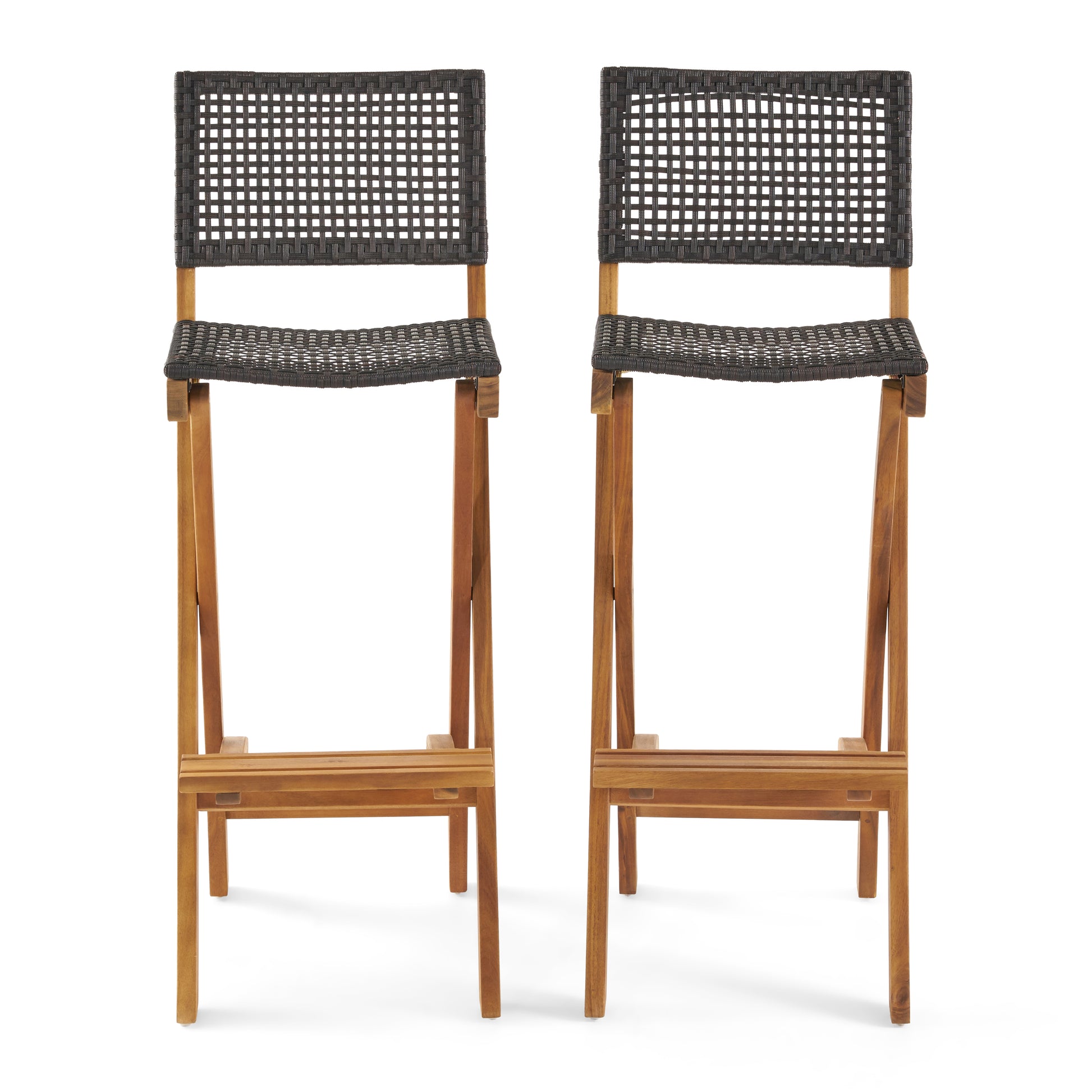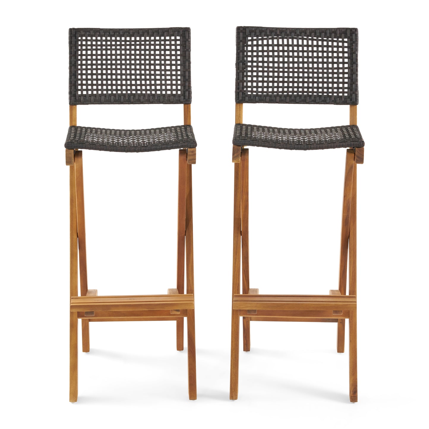 Uplift your outdoor space with a set of barstools that will blend in perfectly with the great outdoors. Providing compact functionality with its foldable option, these barstools offers convenient mobility, allowing you to use these in a multitude of ways. Constructed with acacia wood frames and woven seating, this set offers reliable durability that naturally withstands most weather conditions. It is finished with traditional hole-to-hole w...