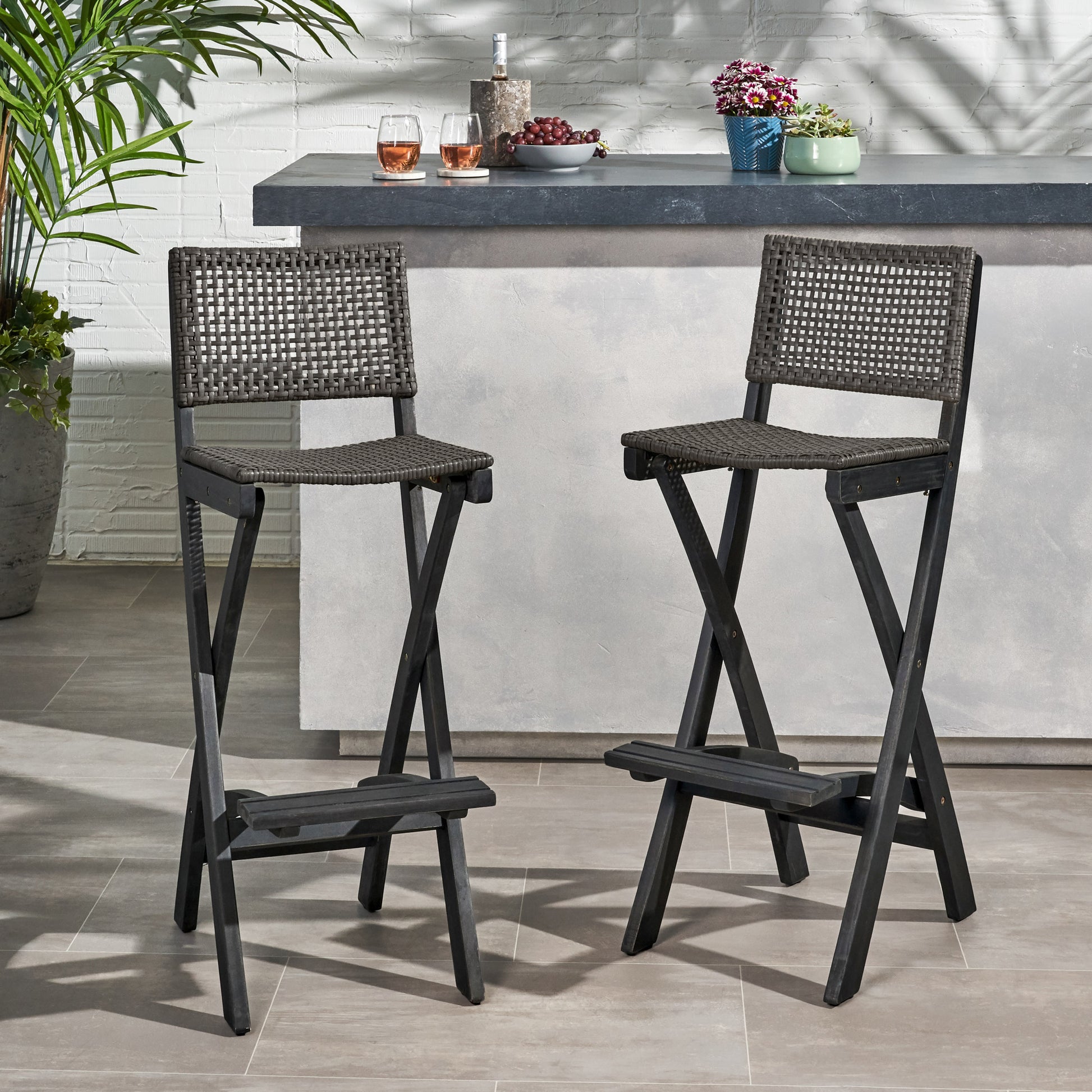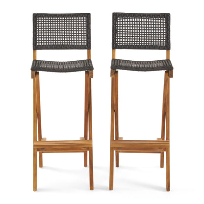 Teresa Outdoor Folding Acacia Wood Barstools (Set of 2)