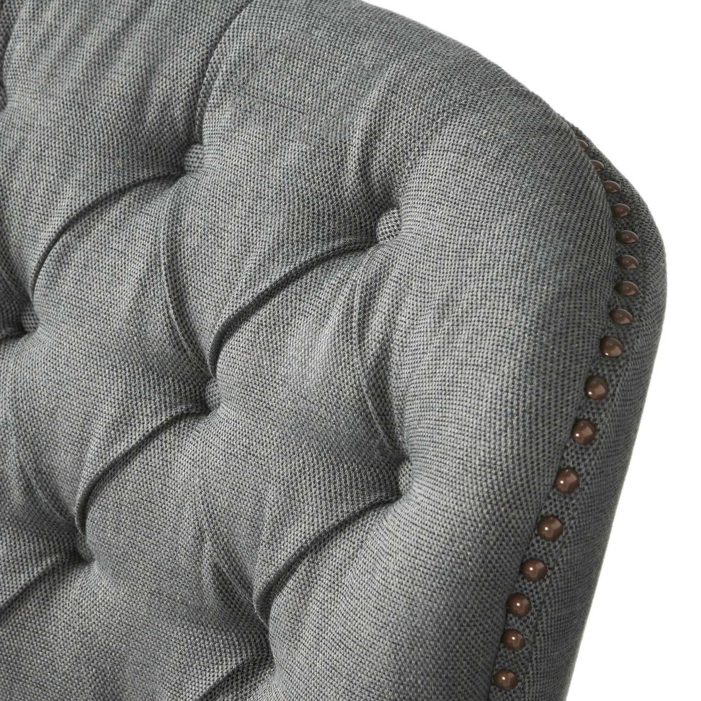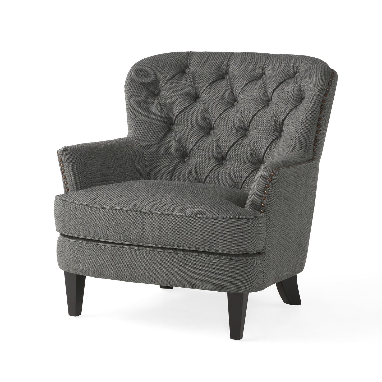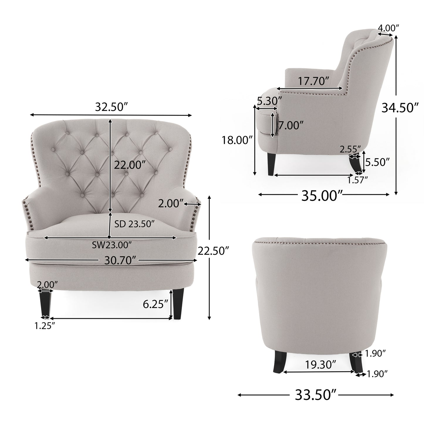 Add comfort to your living room and charm to your sitting area with our versatile club chair and ottoman set. Boasting smooth, lovely, diamond-tufted upholstery and a soft cushion, this contemporary chair invites you to take a seat. Nailhead trim and tapered legs ensure that no detail is forgotten. Completed by a curvaceous, traditional silhouette and a matching ottoman, the set is pretty and practical. Design a quaint little reading and co...