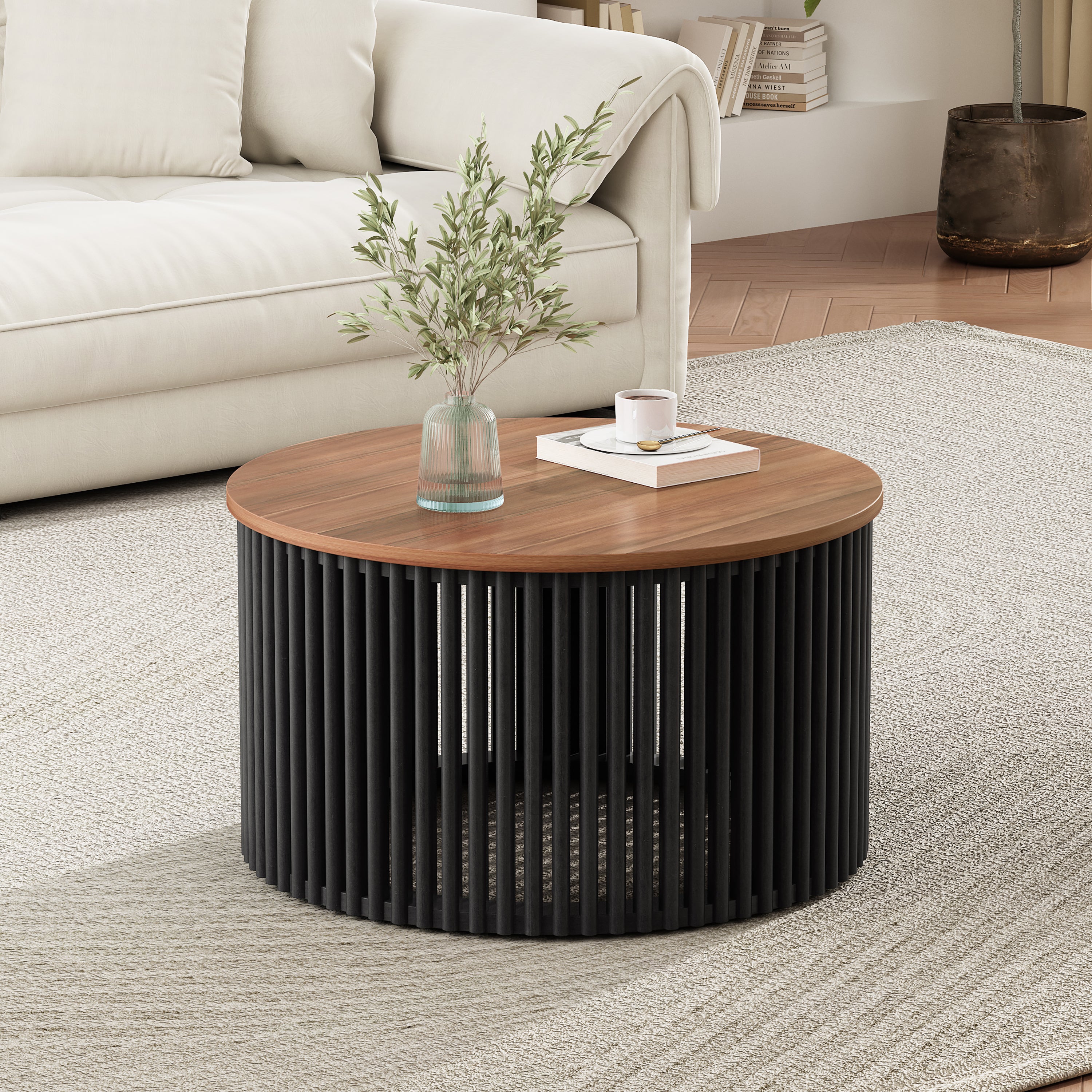 STYLISH DESIGN: This elegant Acacia wood table set blends organic warmth with modern sophistication. The coffee table (30" diameter) and matching side table (17.5" diameter) showcase beautifully crafted tops with genuine Acacia veneer over durable MDF, revealing rich, natural grain patterns. Their circular silhouettes rest upon sturdy solid wood bases in a matching finish, creating a perfectly coordinated look that adds harmonious style to ...