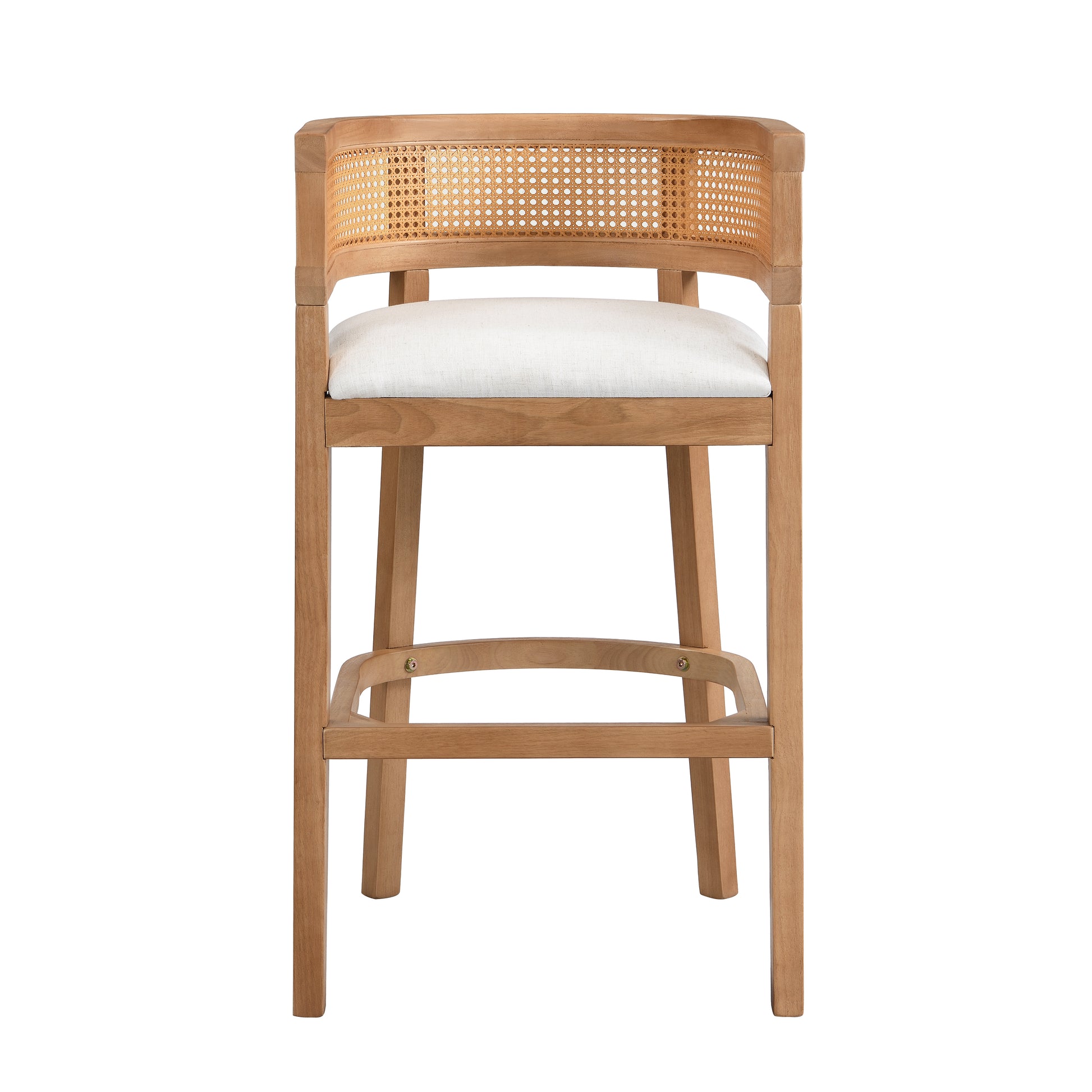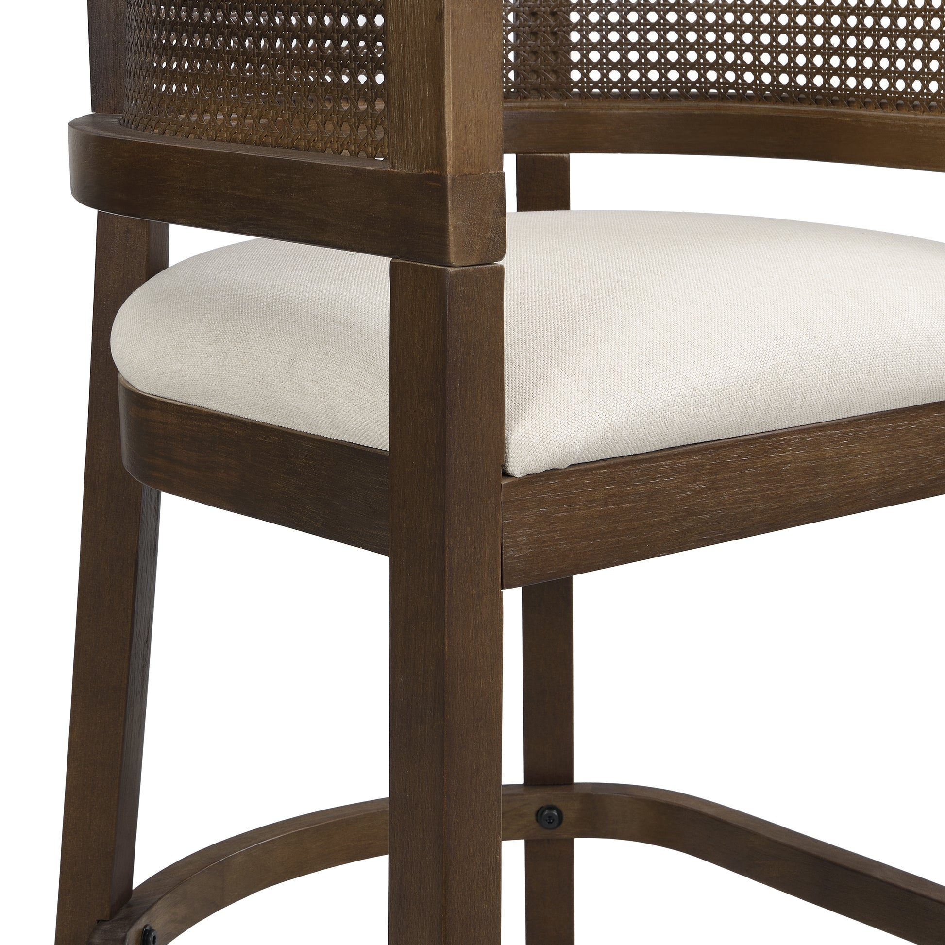 Tiberius Wood And Rattan Upholstered Arm Bar Stools,Set of 2