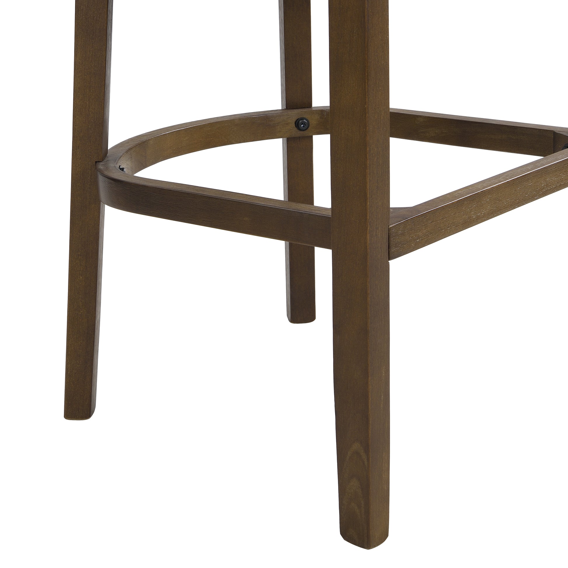 Enhance your kitchen with this transitional bar stool with arms. Its natural wood, reclaimed natural finish, and caning detail add timeless charm. The aged look pairs perfectly with its contemporary lines. Assembly required.