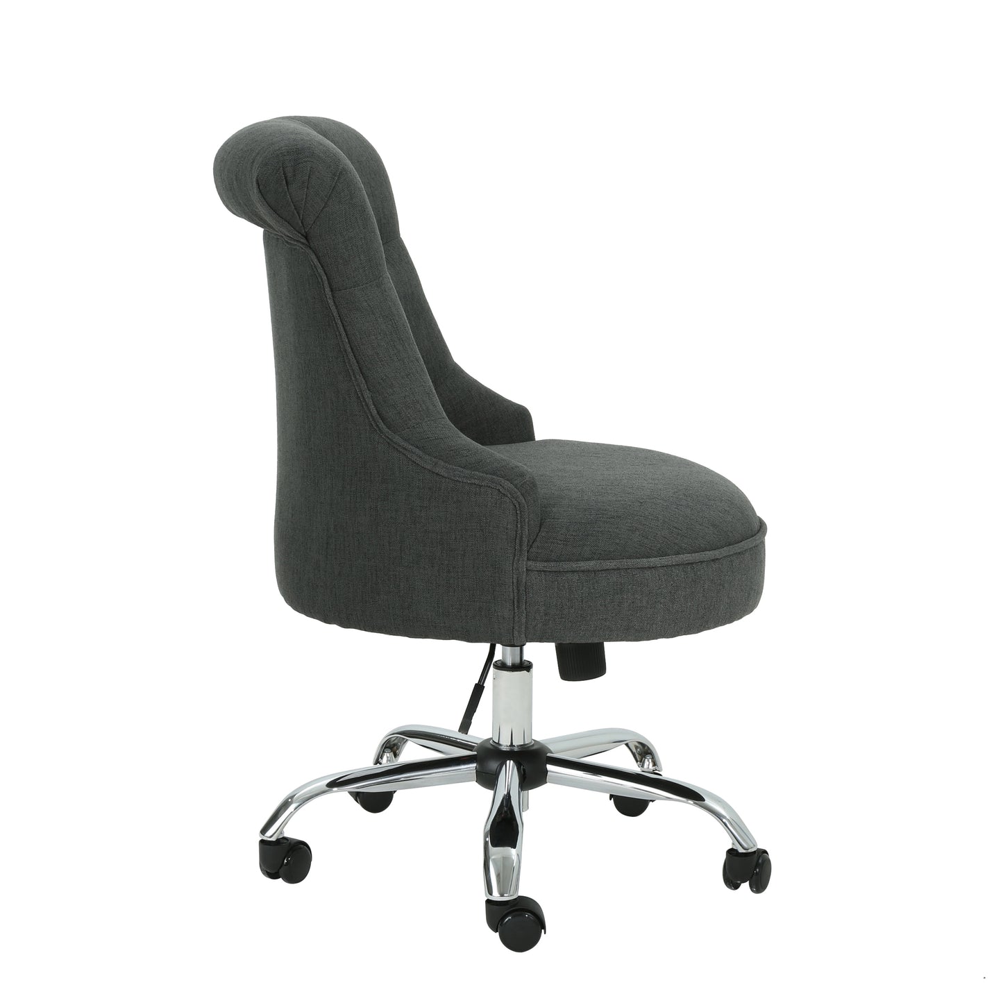 Welcome to home-office comfort and luxury with seating that embraces you with open arms. Our office chair will put anybody in the mood to study or work with its plush diamond stitched tufting and rolled backrest, providing comfort while you contend with the task at hand. This is finished with excellent functionality, including swivel movement, a lift mechanism for adjustability, and rolling casters for easy mobility.