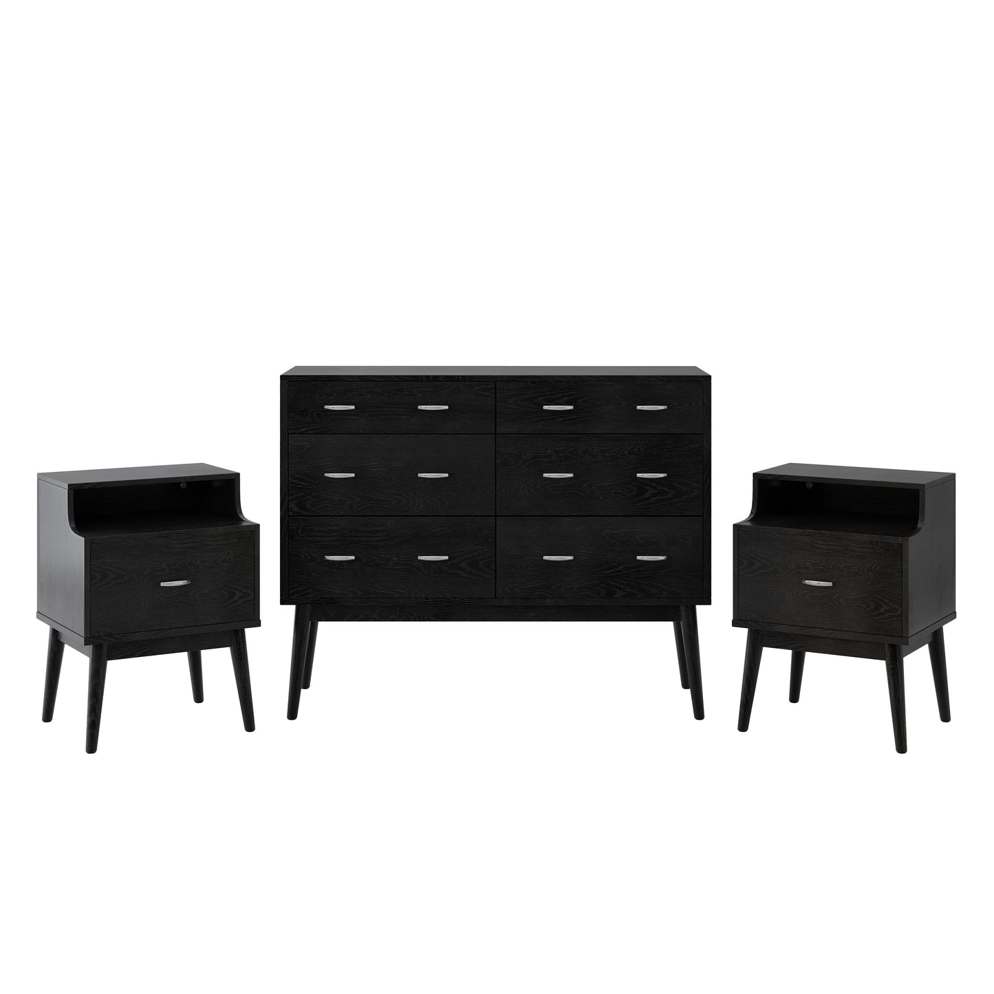 Wilbur Mid Century Wooden 3 Piece Double Dresser and Nightstand Bedroom Set