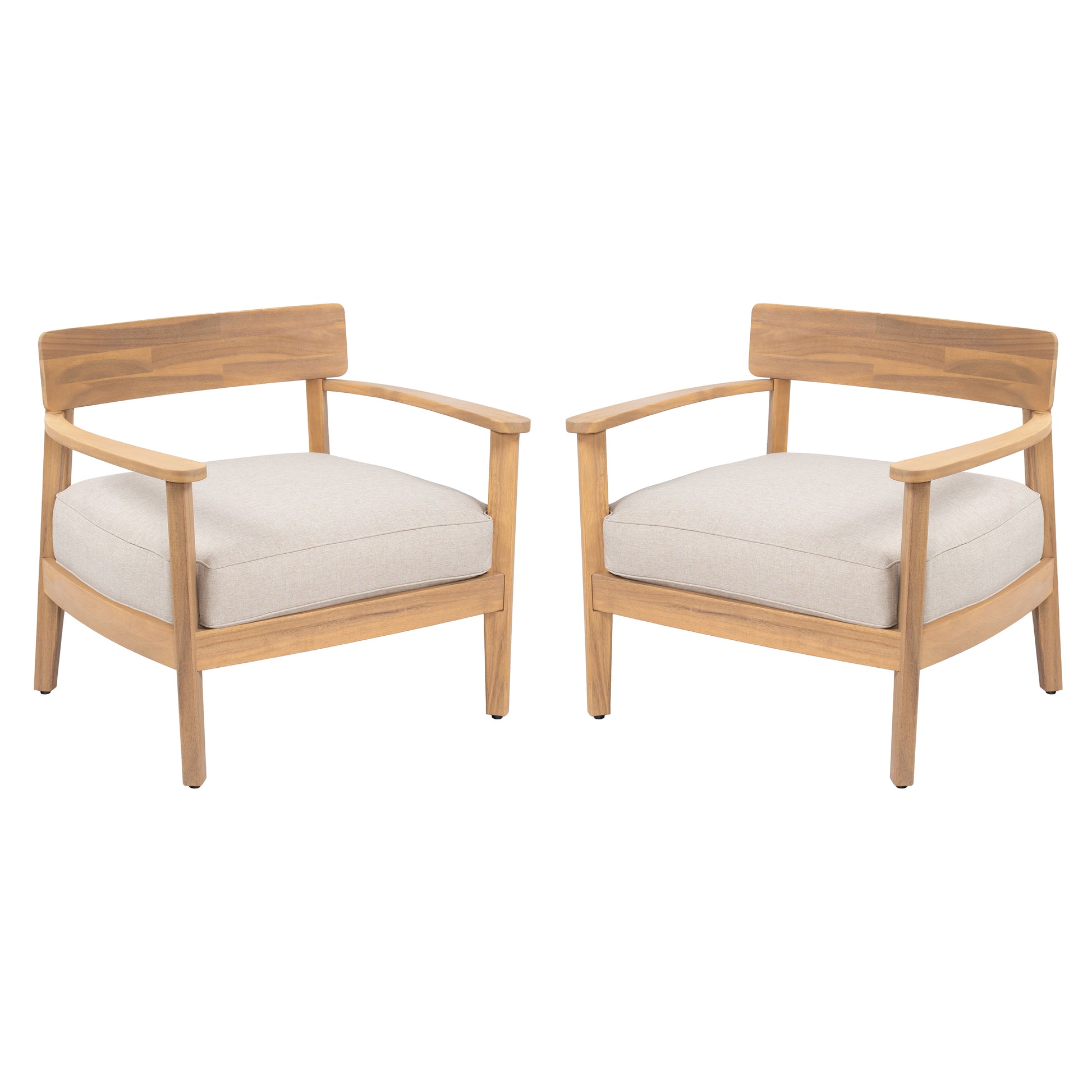 Xylorion Acacia Wood Low back Club Armchair With Seat Cushion