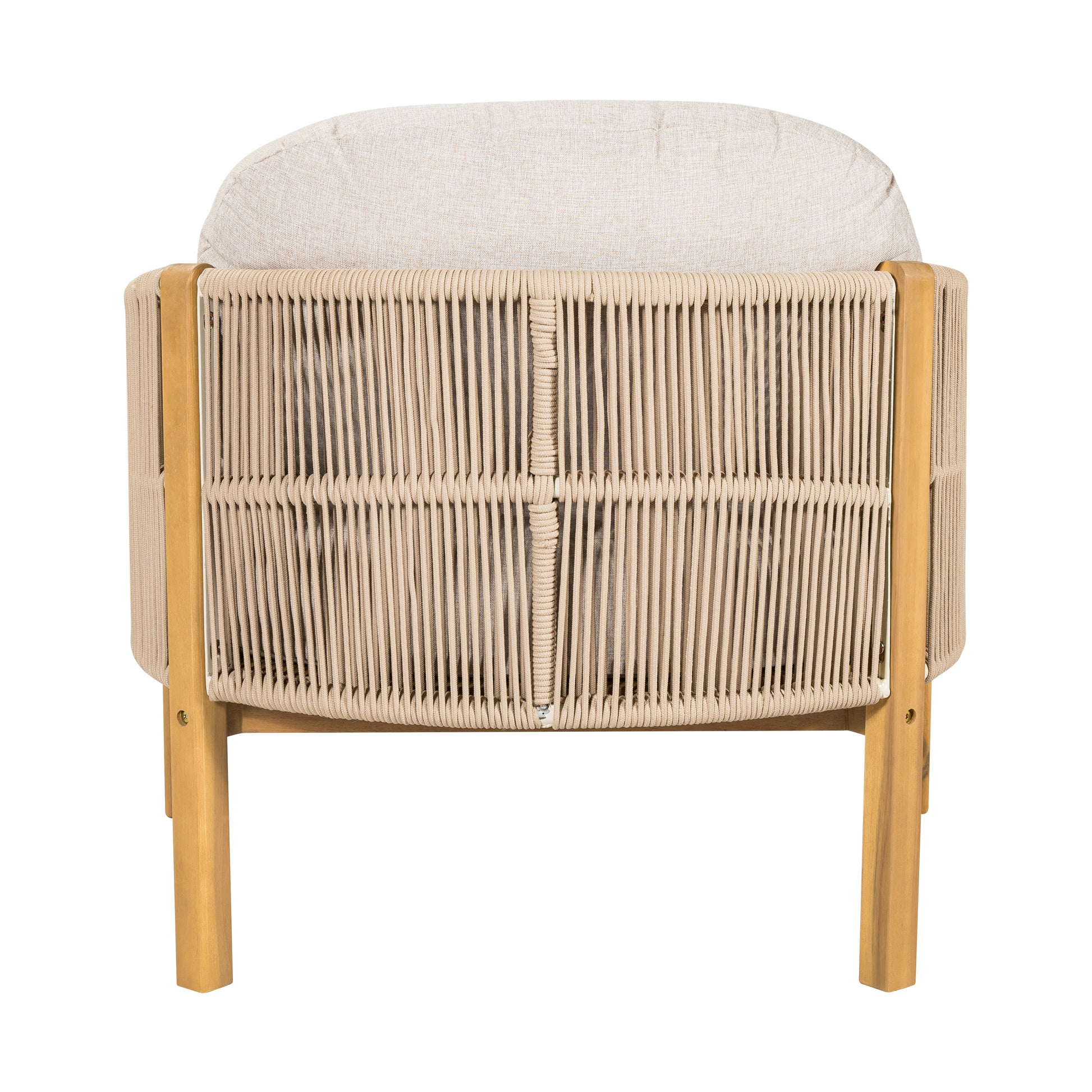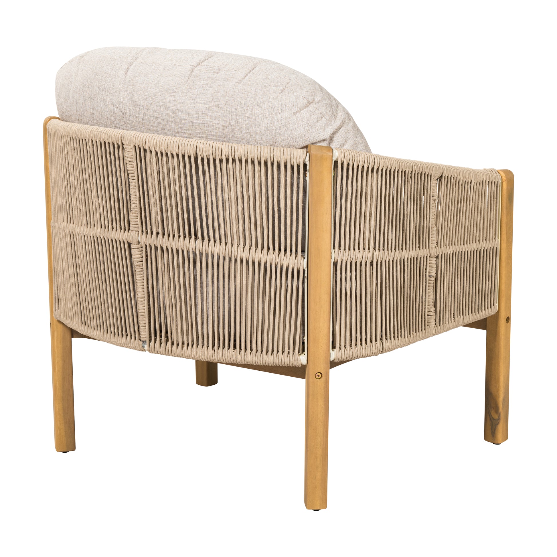 Backrest and Armrest Design: The backrest and armrests are uniquely crafted, being meticulously woven from ropes. The ropes are tightly interlaced, forming a rhythmic and elastic...
