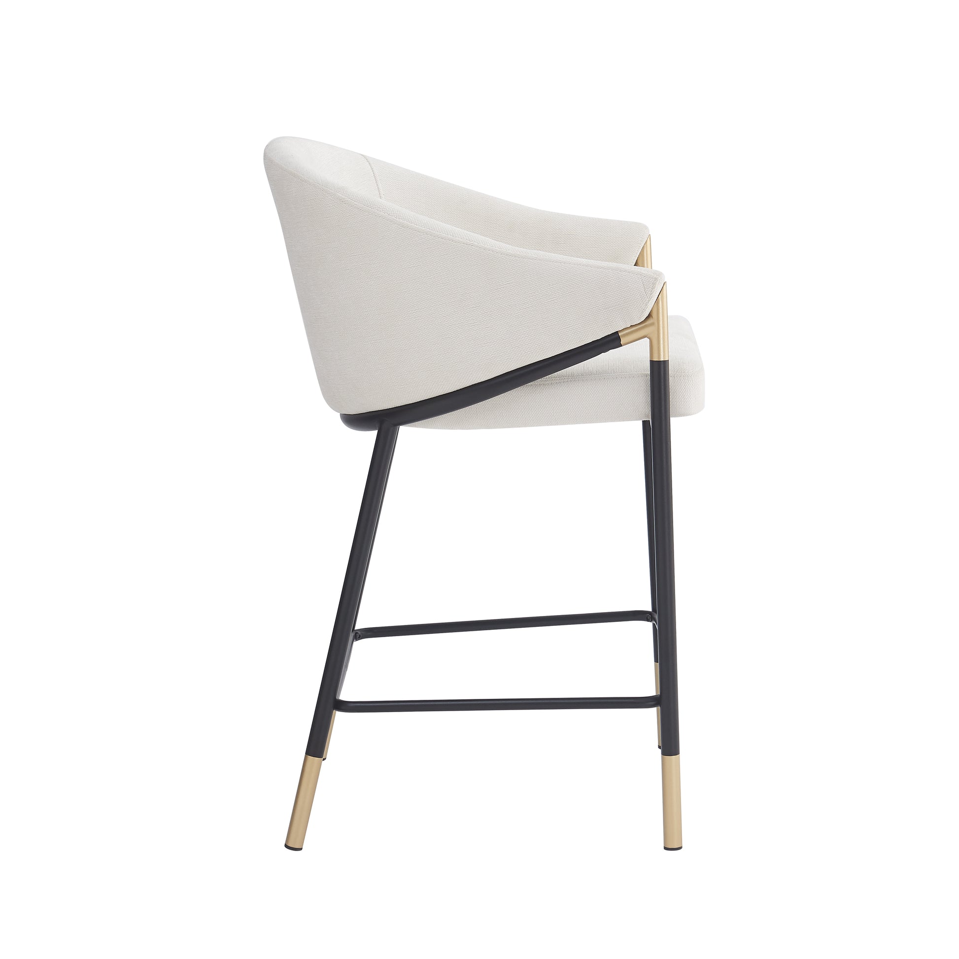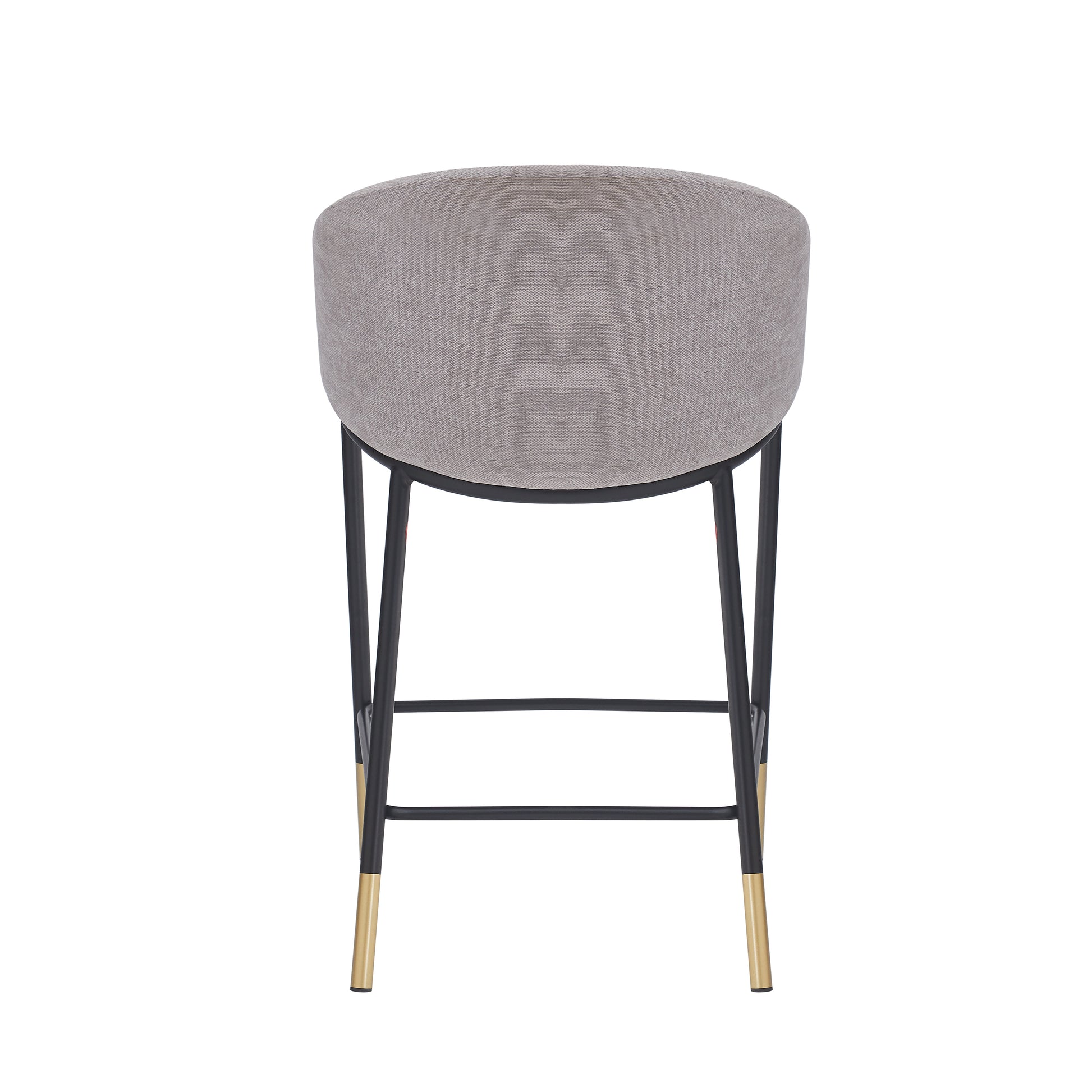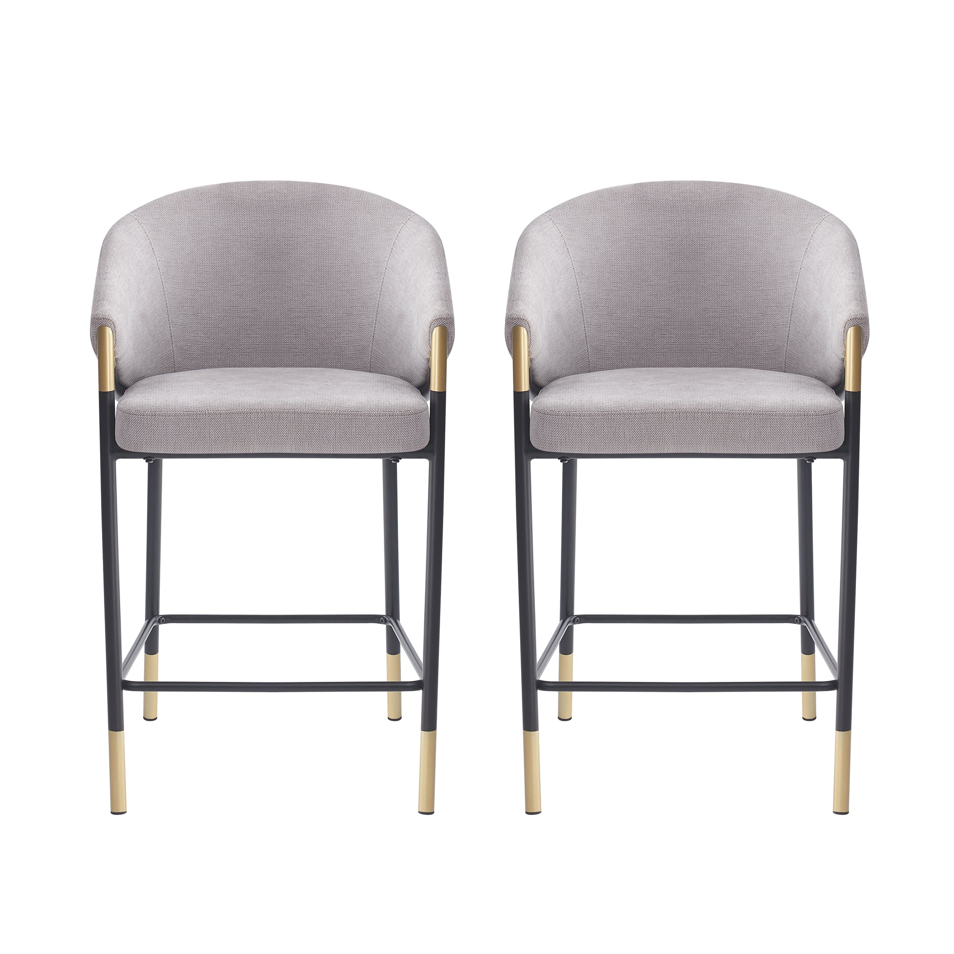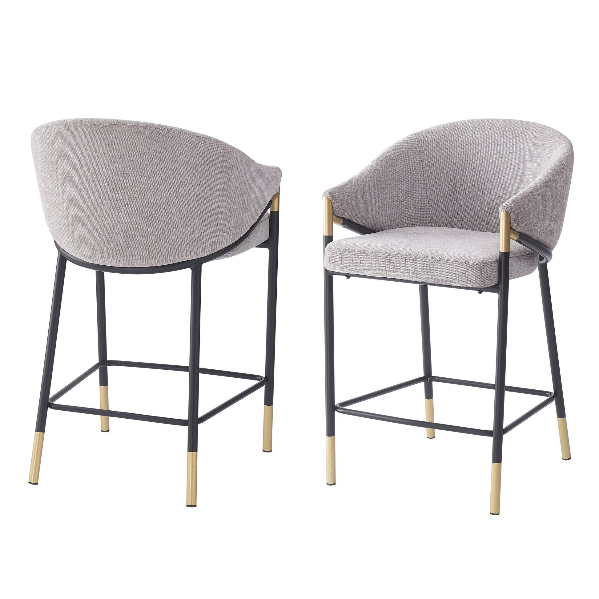 Sleek Modern Design: Curved gray fabric seat and backrest for superior comfort, paired with minimalist black metal legs featuring gold accents.