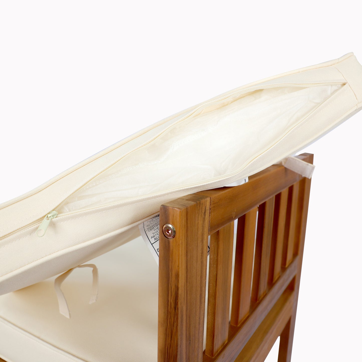 Spice up your patio or backyard space with a rustic look by featuring our simple, yet classic dining chairs. Made of sleek, solid wood, these chairs are perfect for any covered patio or backyard space. With weather resistant cushions that can be attached to your chair, these chairs are not only practical but also ideal for many types of decor.